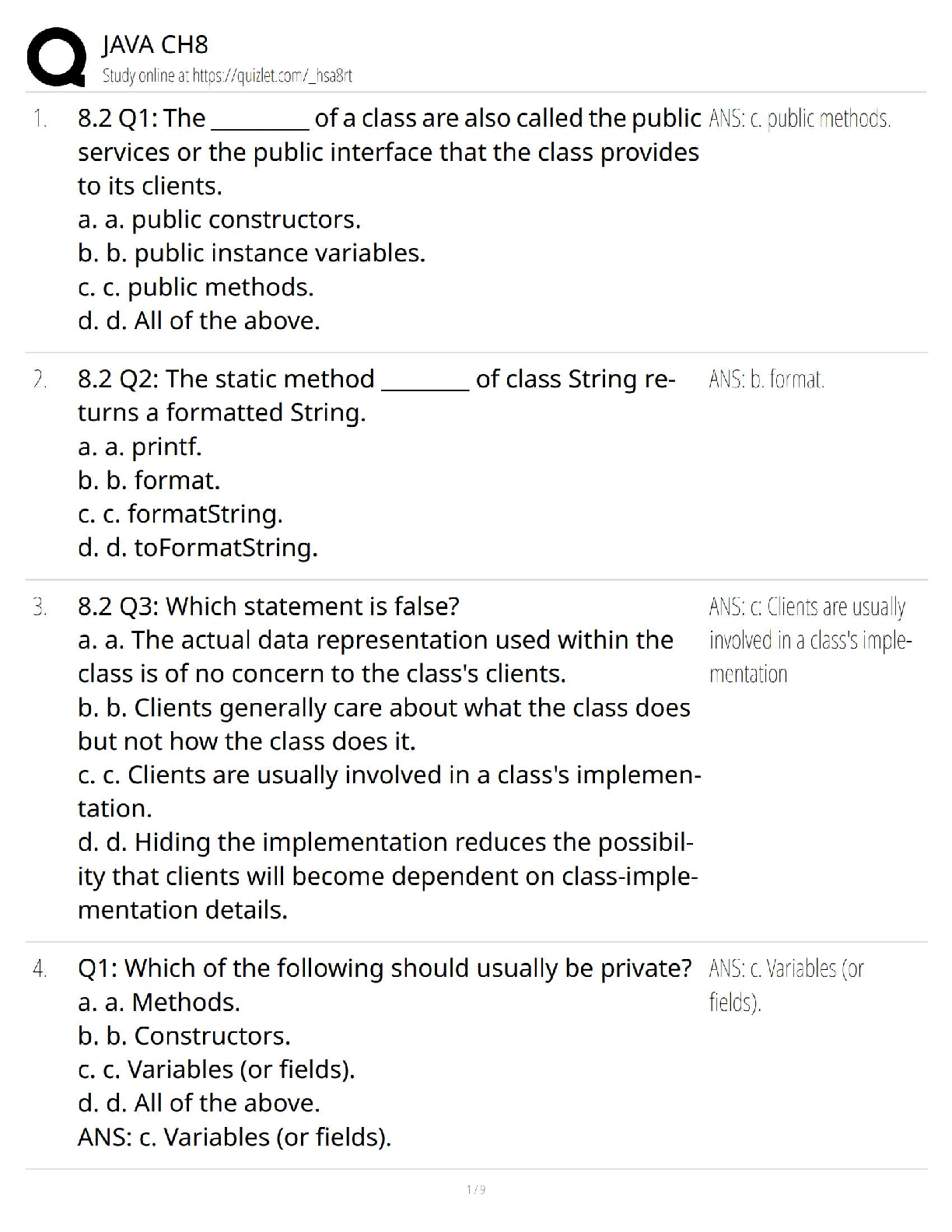 Computer Science > QUESTIONS & ANSWERS > Java Programming Chapter 8 / Classes & Objects Practice Test 2025 / Exam Prep & Coding Assignments (All)