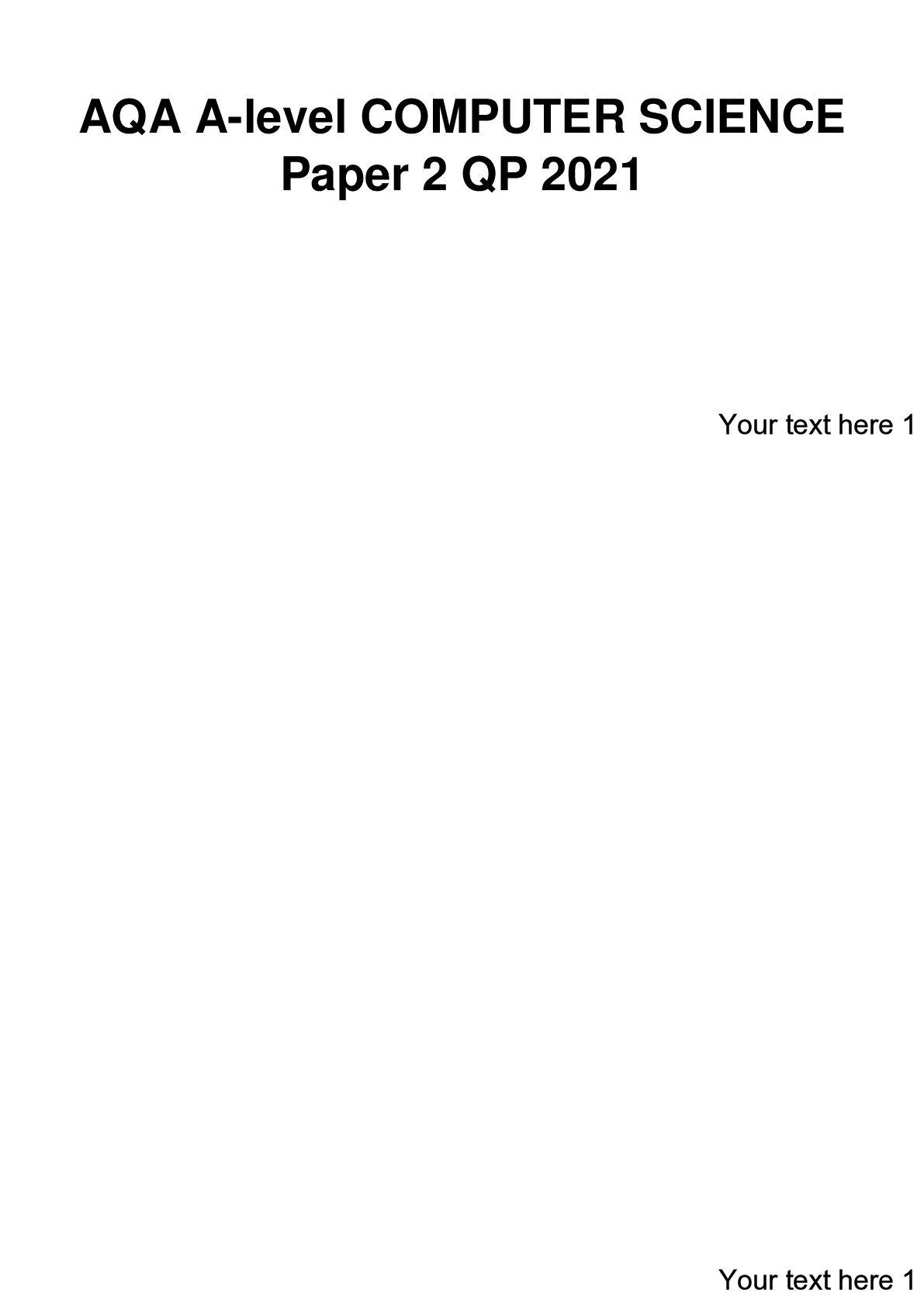 Computer Science > AQA Question Papers > AQA A-level COMPUTER SCIENCE Paper 1 Question Paper June 2021 (All)