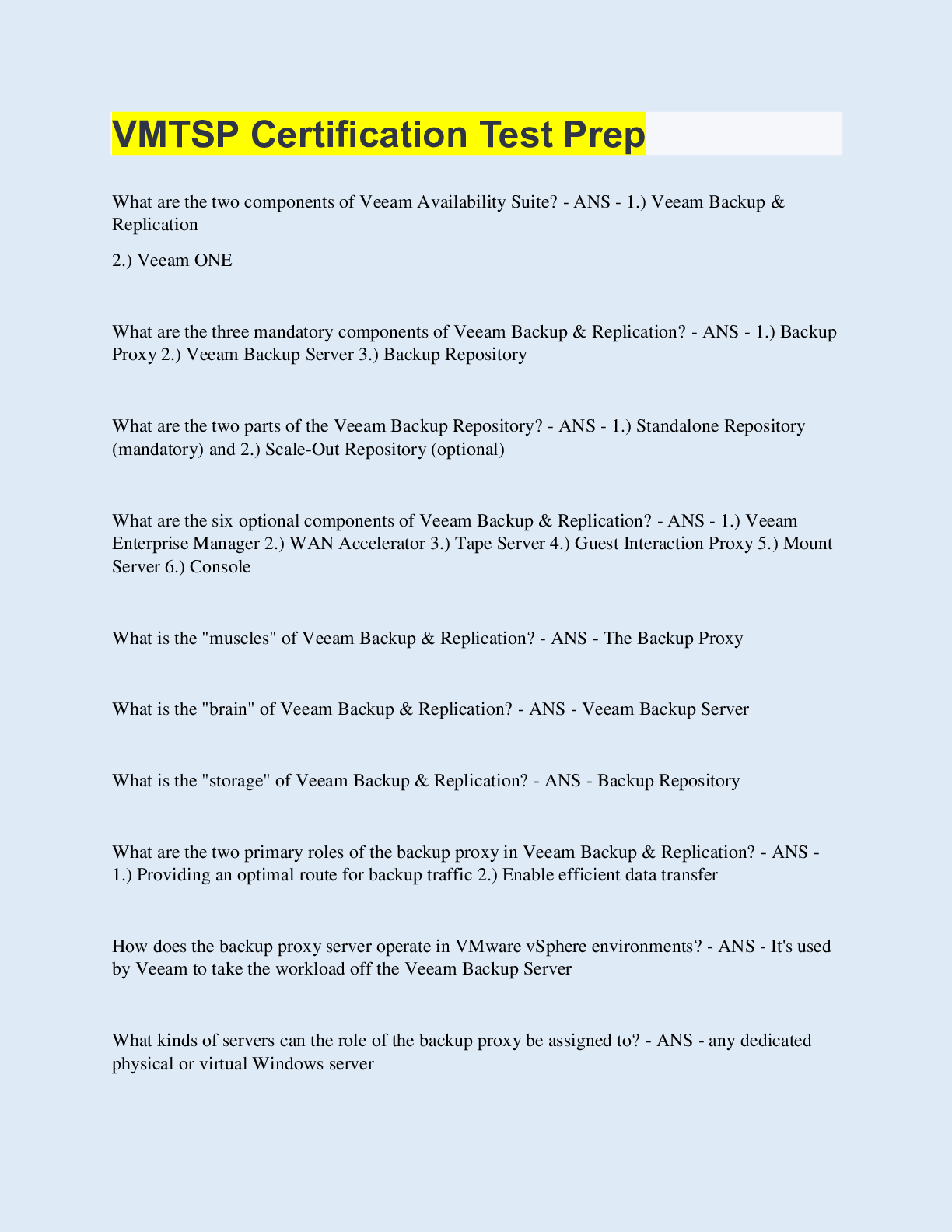 Computer Science > STUDY GUIDE > Veeam Backup & Replication Study Guide | 150 Questions with 100% Correct Answers | Updated & Verified (All)