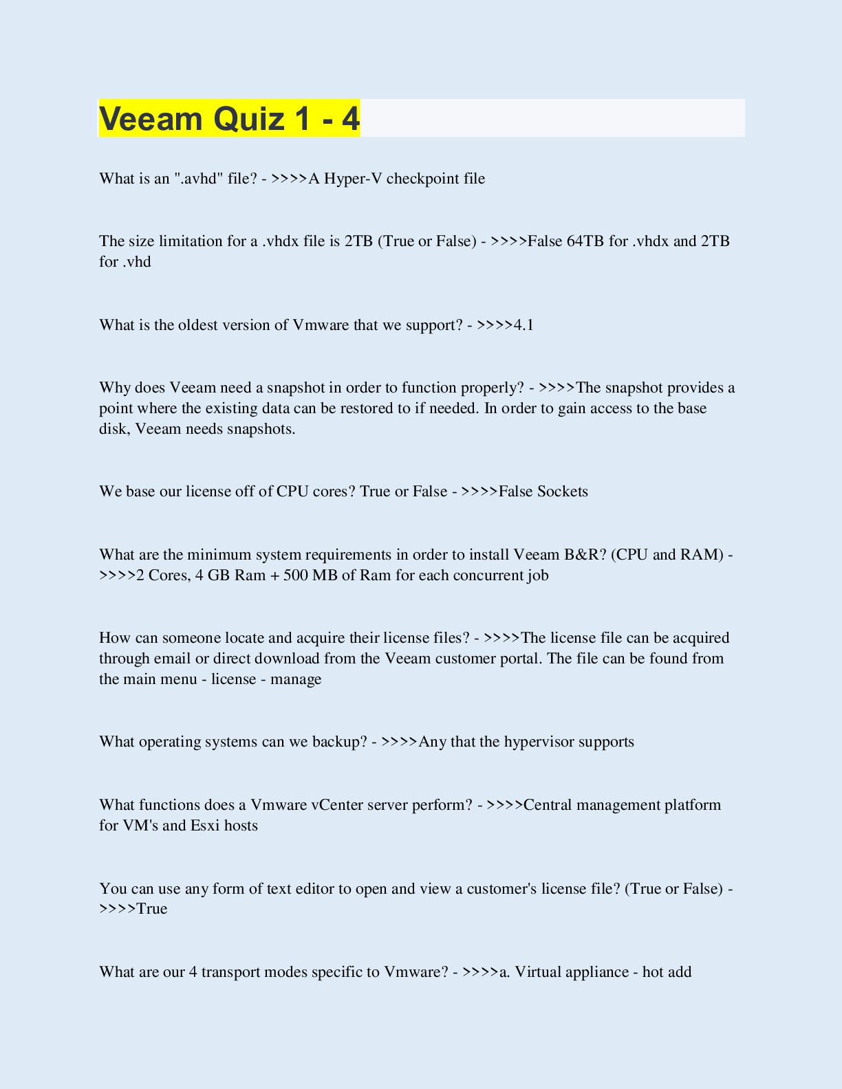 Computer Science > EXAMs > Veeam Quiz 1 - 4 | 60 Questions with 100% Correct Answers | Updated & Verified (All)