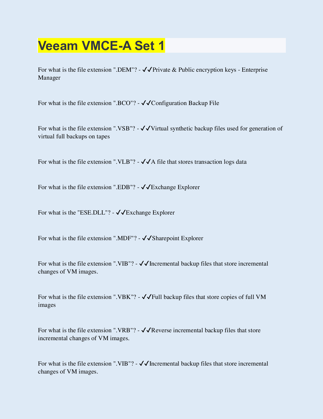 Computer Science > EXAMs > Veeam VMCE-A Set 1 | 55 Questions with 100% Correct Answers | Updated & Verified (All)