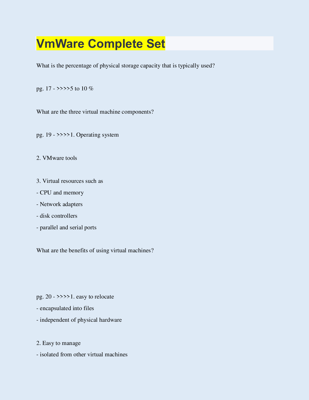 Computer Science > EXAMs > VmWare Complete Set | 230 Questions with 100% Correct Answers | Updated & Verified | 87 Pages (All)