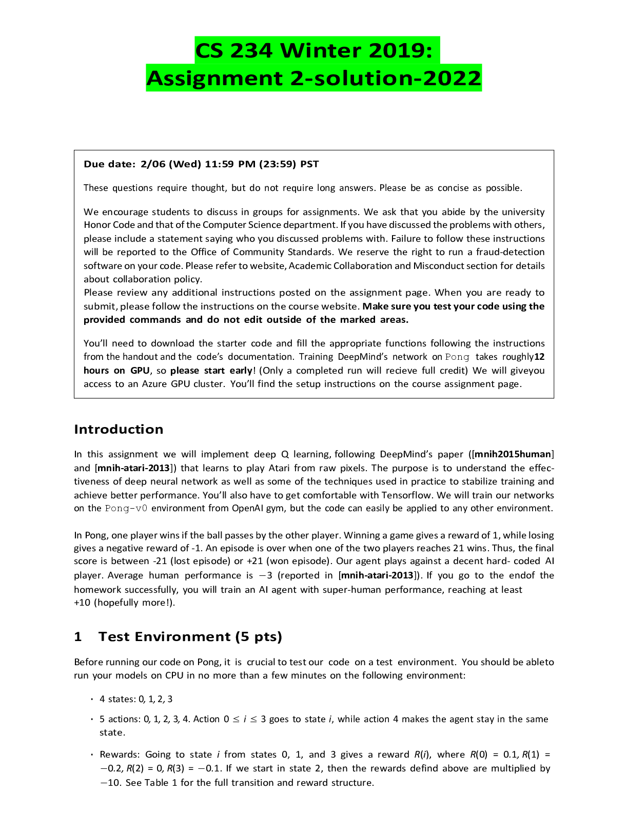 Computer Science > EXAMs > CS 234 Winter 2019: Assignment 2-solution-2022 (All)