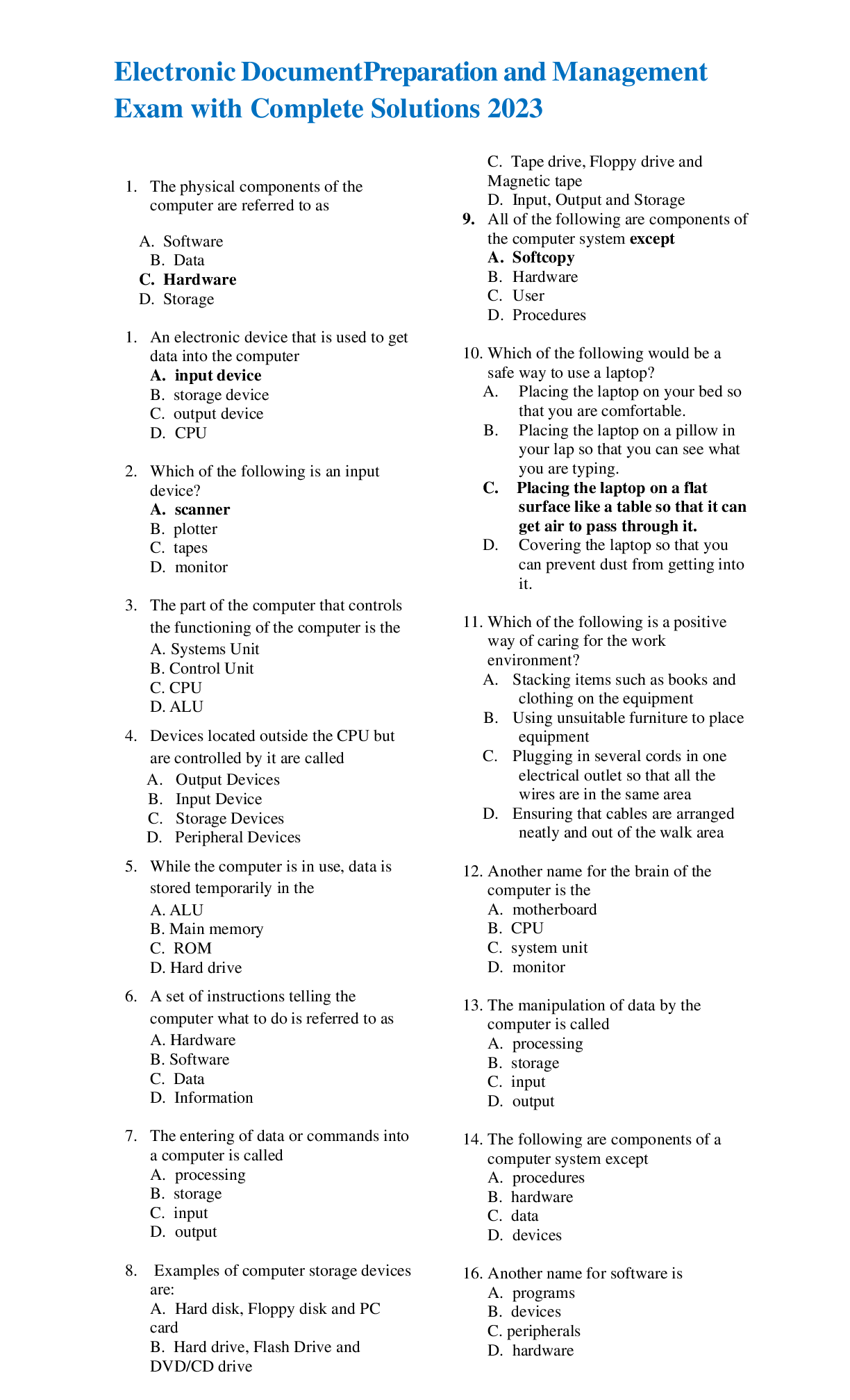 Computer Science > EXAMs > Electronic Document Preparation and Management Exam with Complete Solutions 2023 (All)