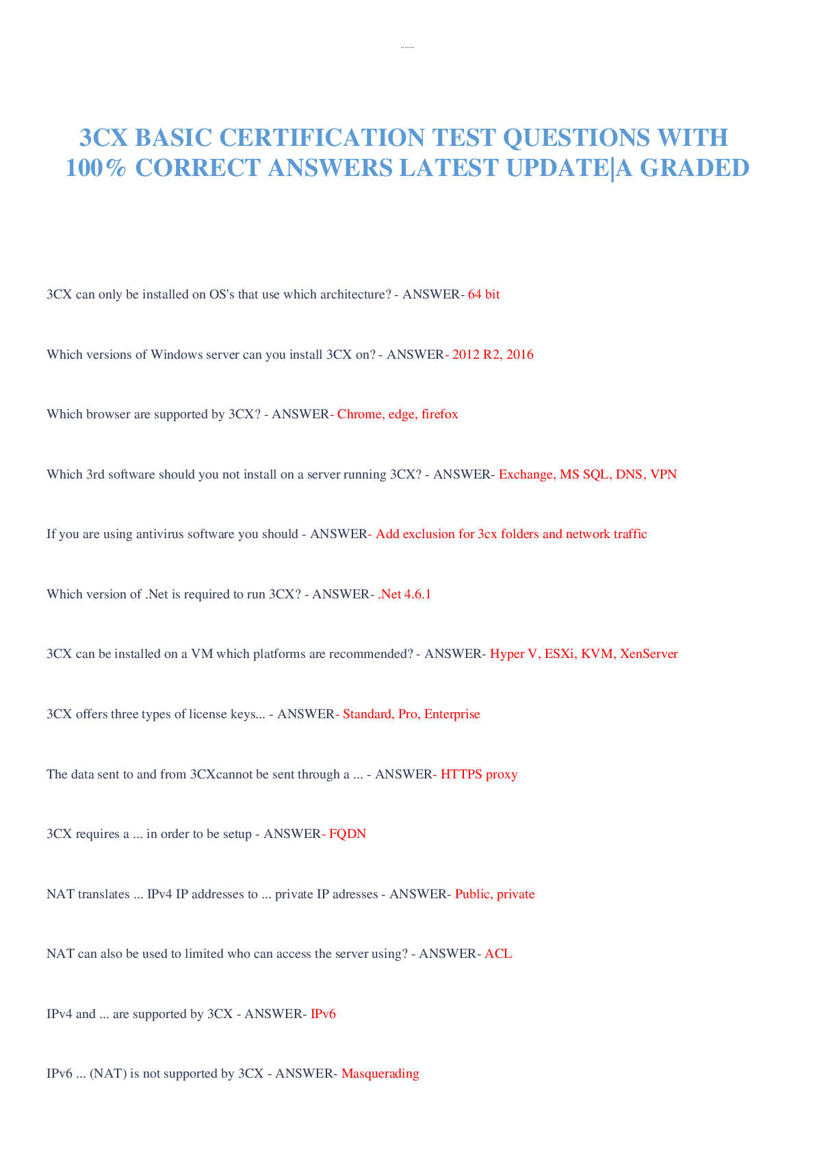Computer Science > EXAMs > 3cx Basic certification Exam Questions and Answers (All)