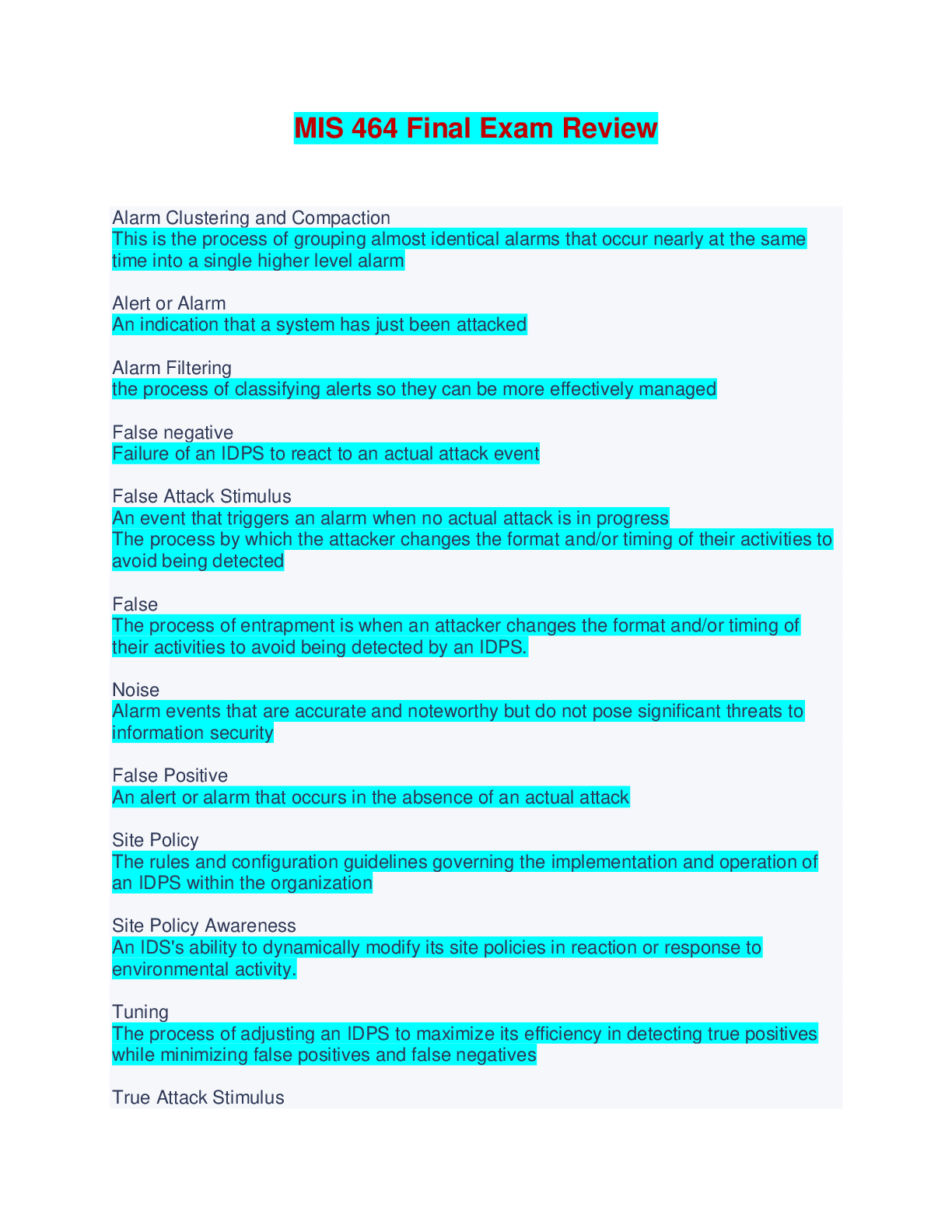 Computer Science > EXAMs > MIS 464 Final Exam Review - Questions and Answers (All)