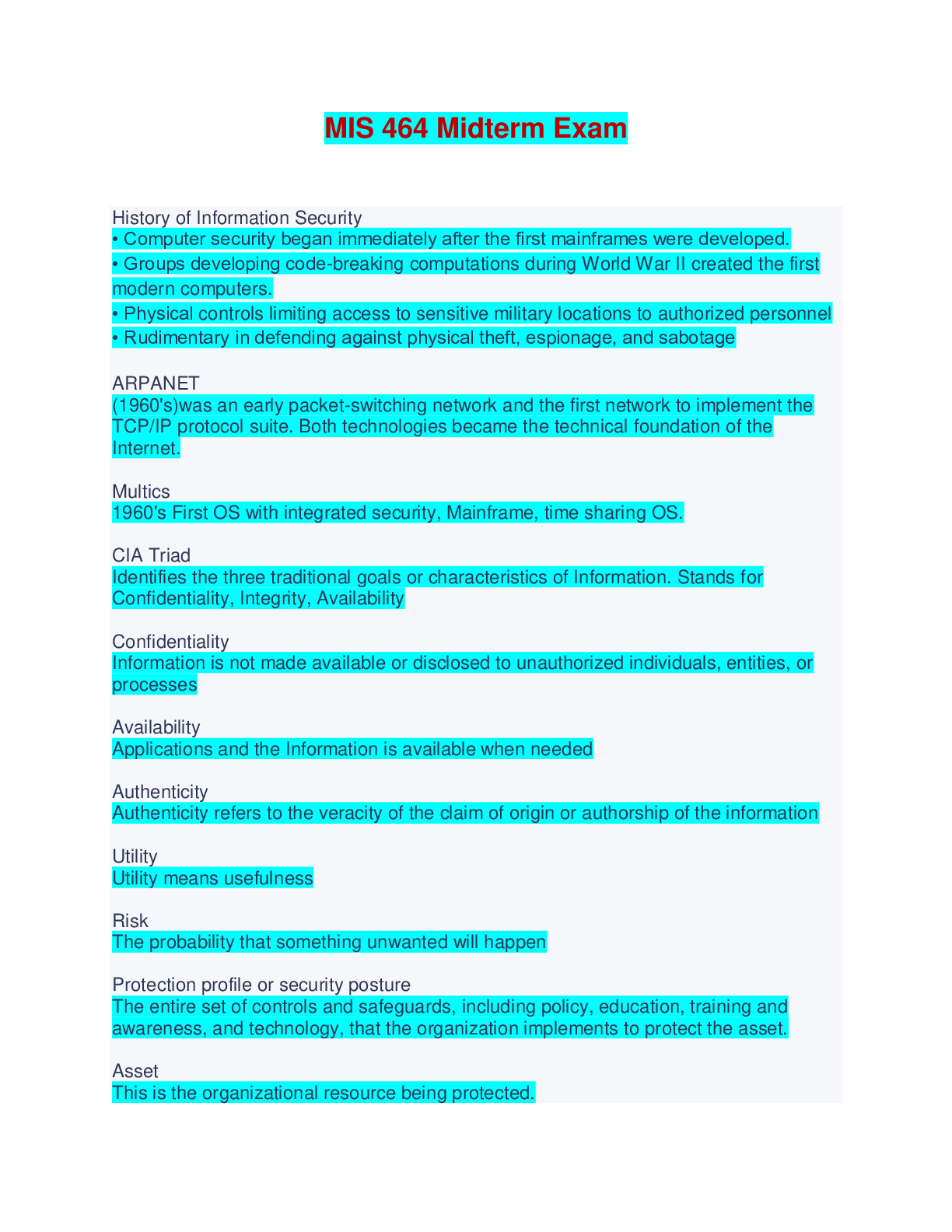 Computer Science > EXAMs > MIS 464 Midterm Exam - Questions and Answers (All)