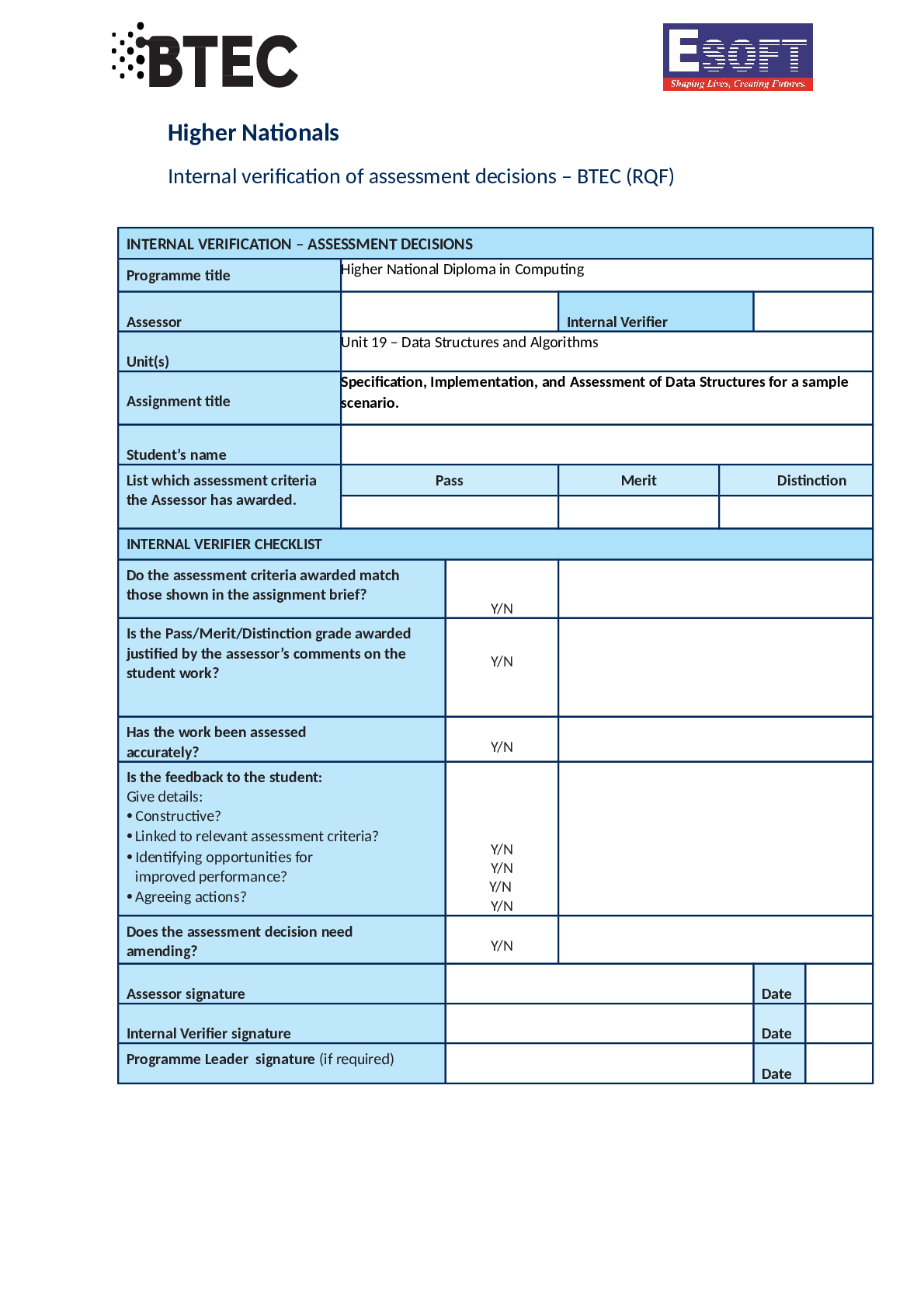Computer Science > STUDY GUIDE > Pearson Higher Nationals in Computing Unit 19: Data Structures & Algorithms Assignment 01General Guidelines Coventry UniversityEEC 405182015 (All)