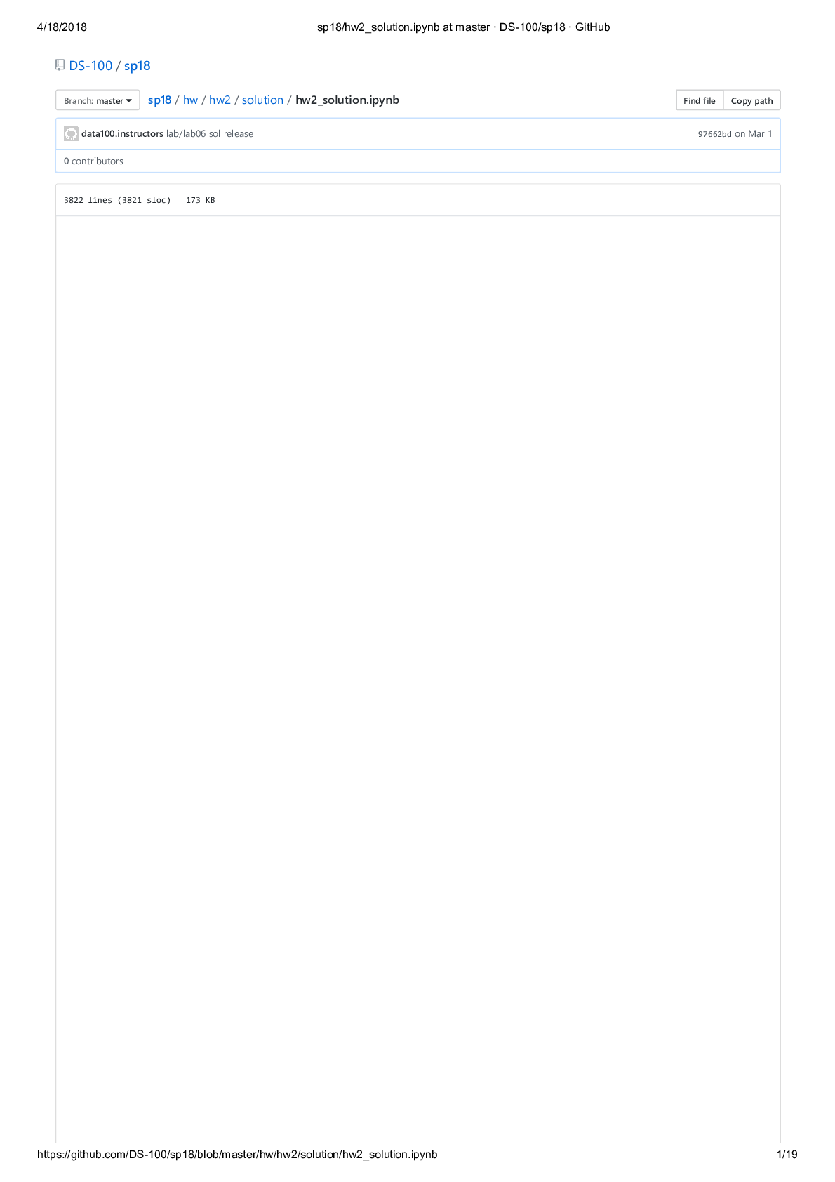Computer Science > QUESTIONS & ANSWERS > University of California, Berkeley DS 100 sp18_hw2_solution.ipynb at master DS-100_sp18 GitHub (All)