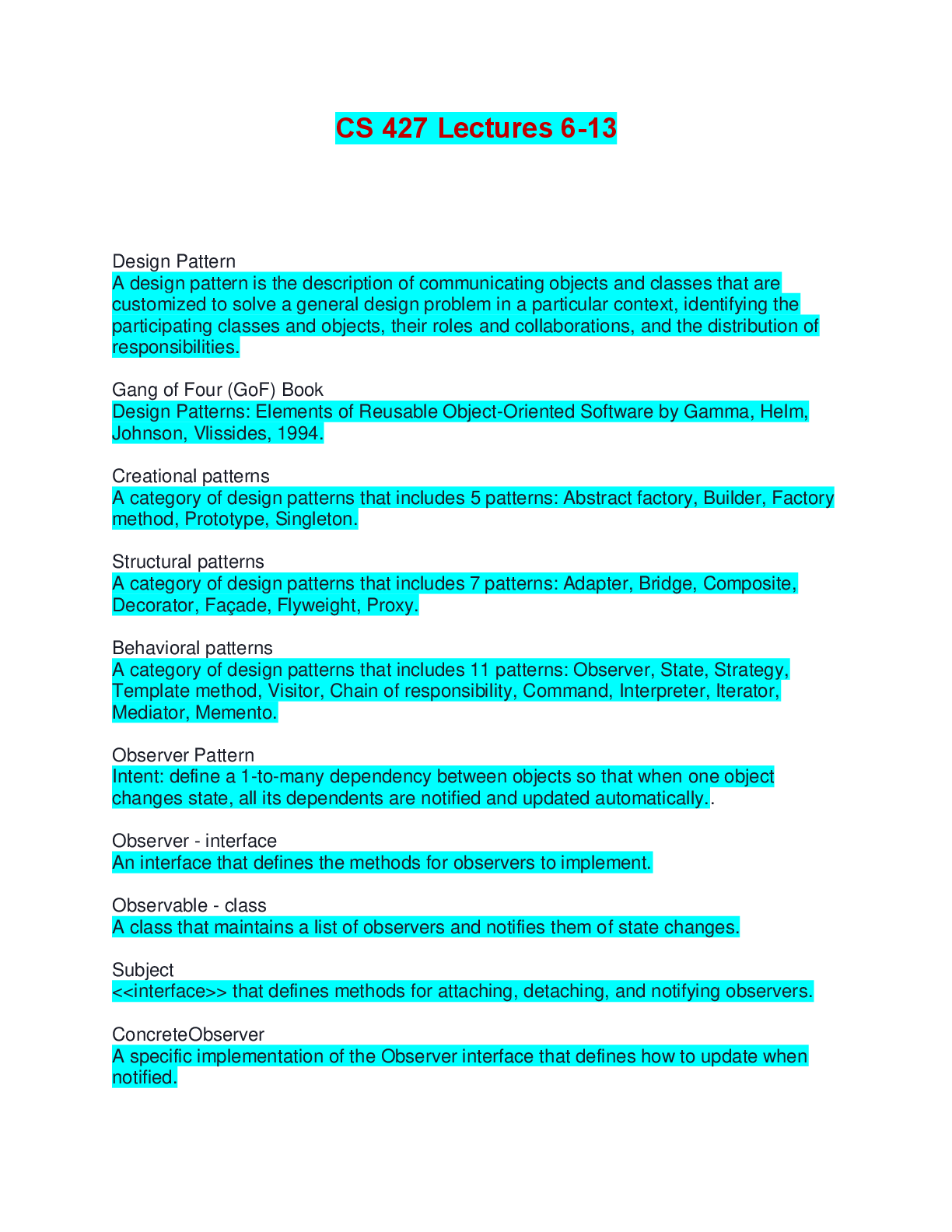 Computer Science > EXAM > CS 427 Lectures 6-13 | Spring 2025, Complete Solutions (All)
