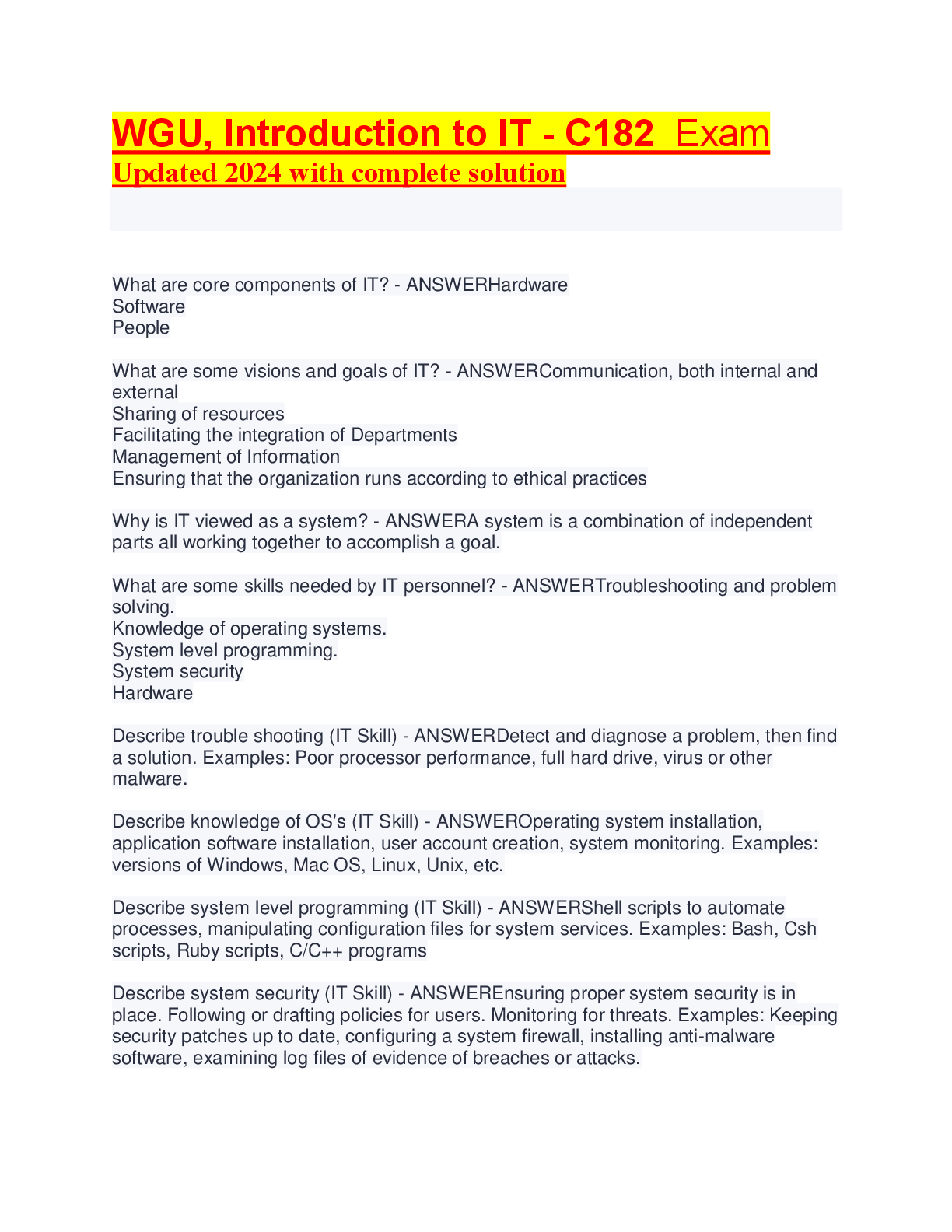 Computer Science > EXAM > WGU, Introduction to IT - C182 Exam Updated 2024 with complete solution (All)