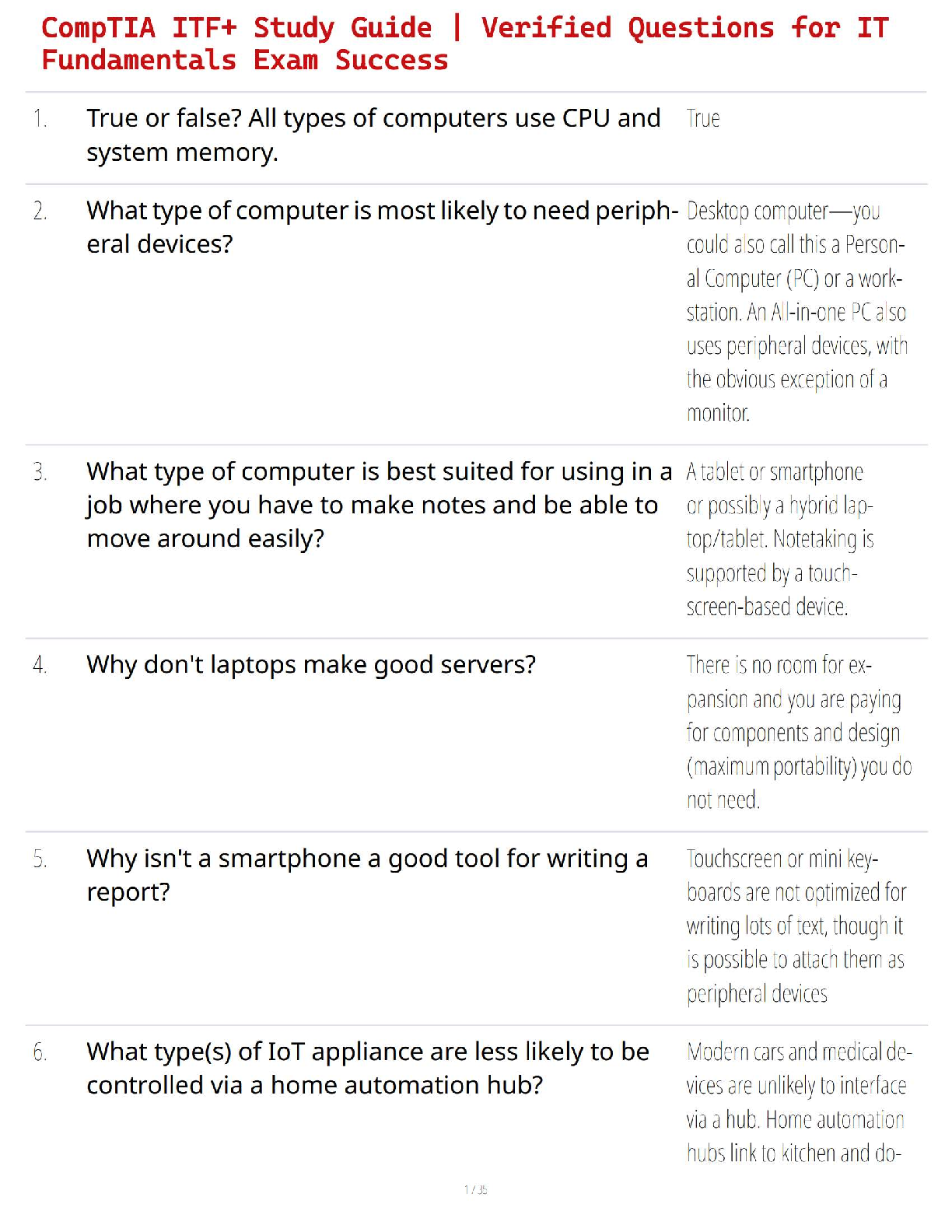 Computer Science > STUDY GUIDE > CompTIA ITF+ Study Guide | Verified Questions for IT Fundamentals Exam Success (All)