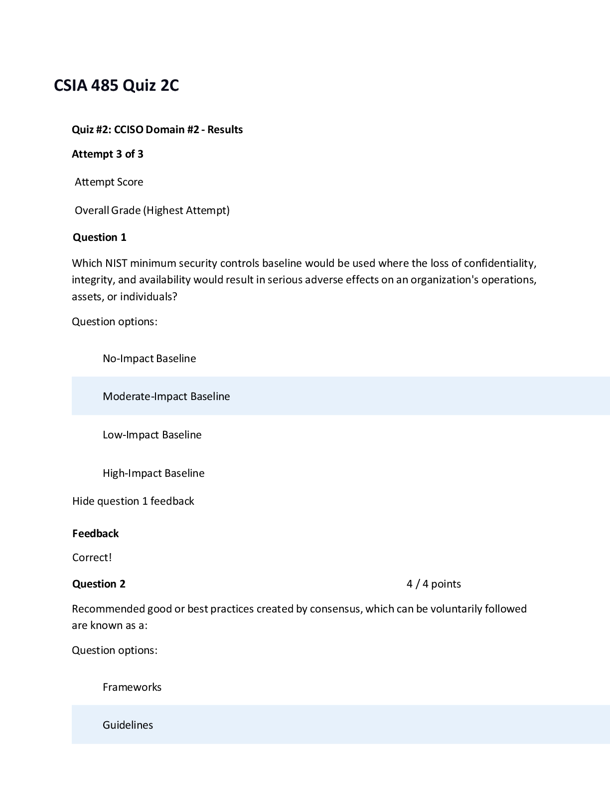 Computer Science > EXAM > CSIA 485 Quiz 2C | Questions and Answers | University of Maryland, University College (All)