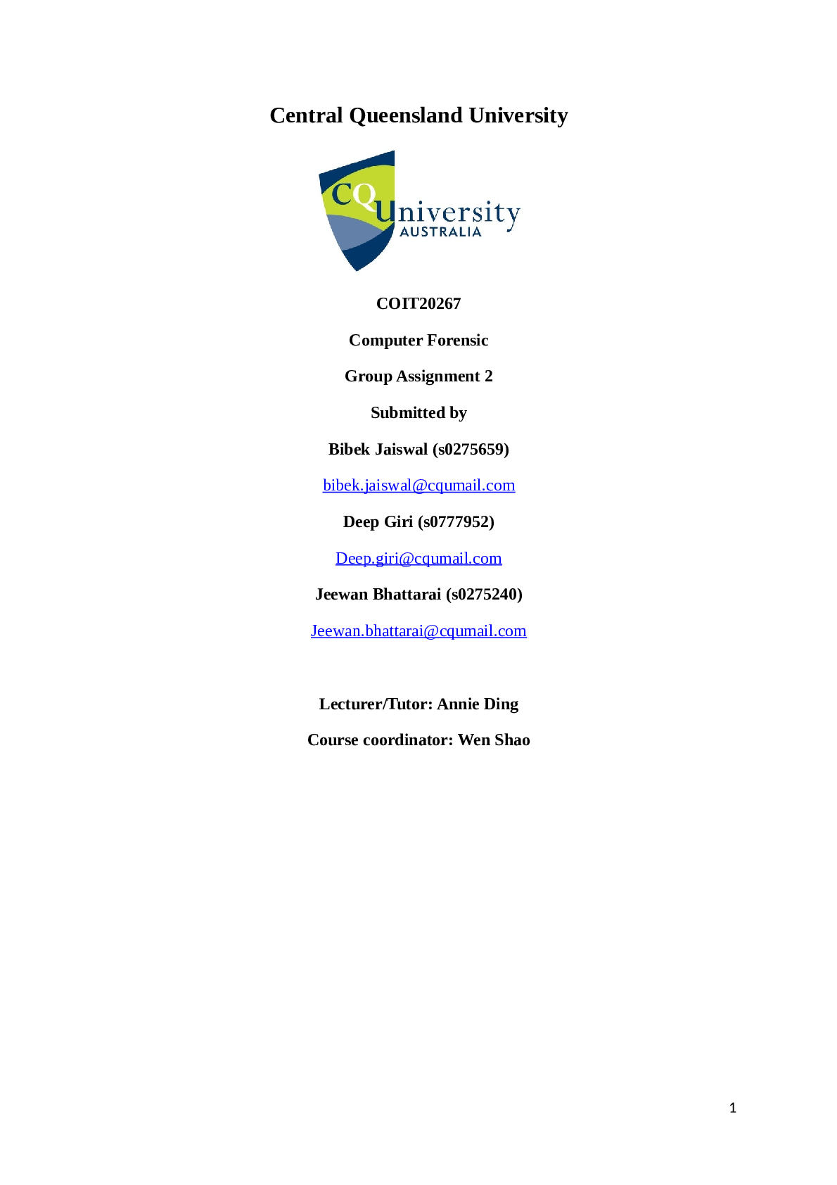 Computer Science > Research Paper > COIT20267 Computer Forensic Group Assignment 2 (All)