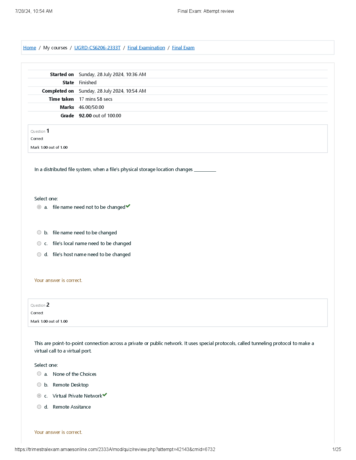 Computer Science > EXAM > BSIT IT6209 Principles of Operating Systems and Its Applications Final Exam | Score 92/100 (All)
