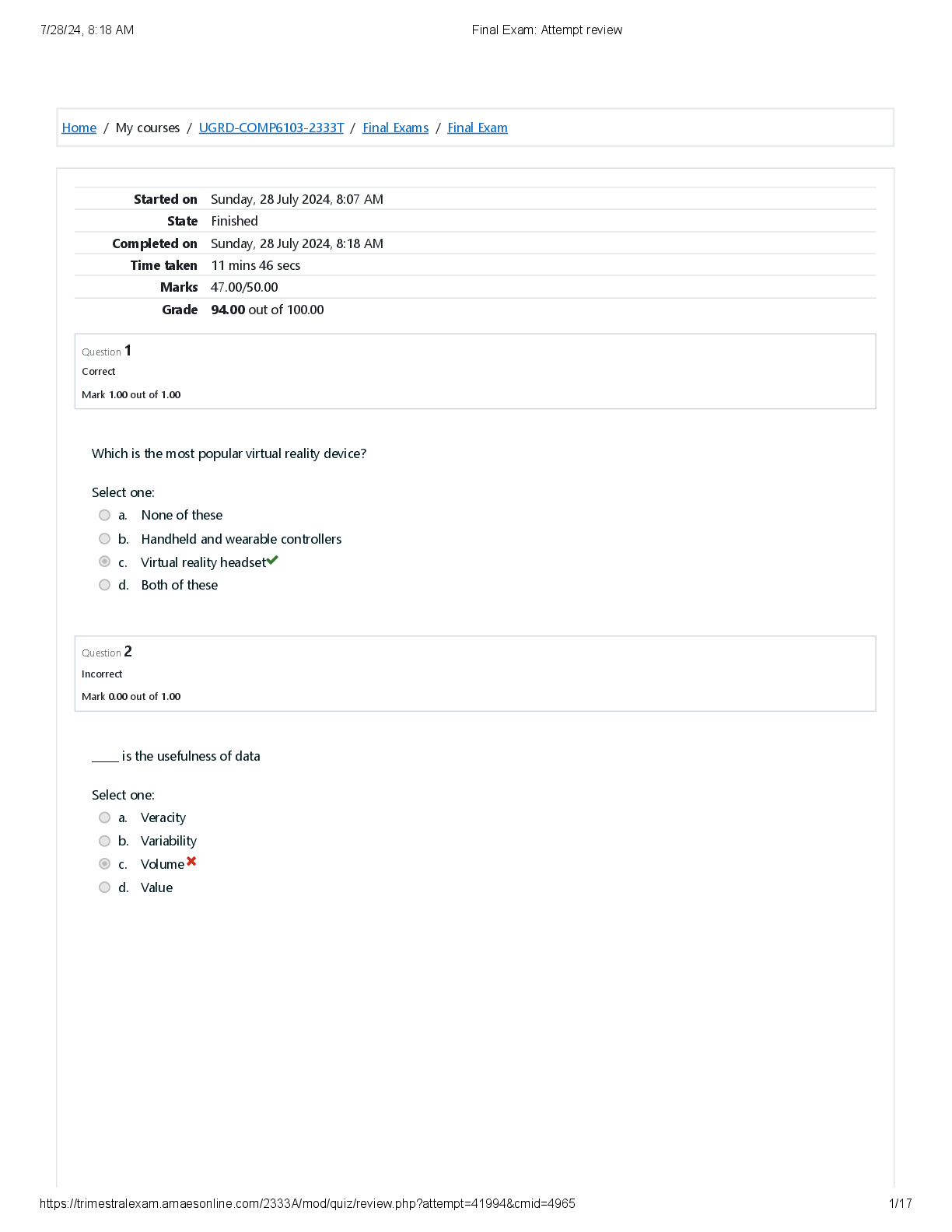Computer Science > EXAM > BSIT IT6209 Current trends and issues Final Exam | Score 94/100 (All)