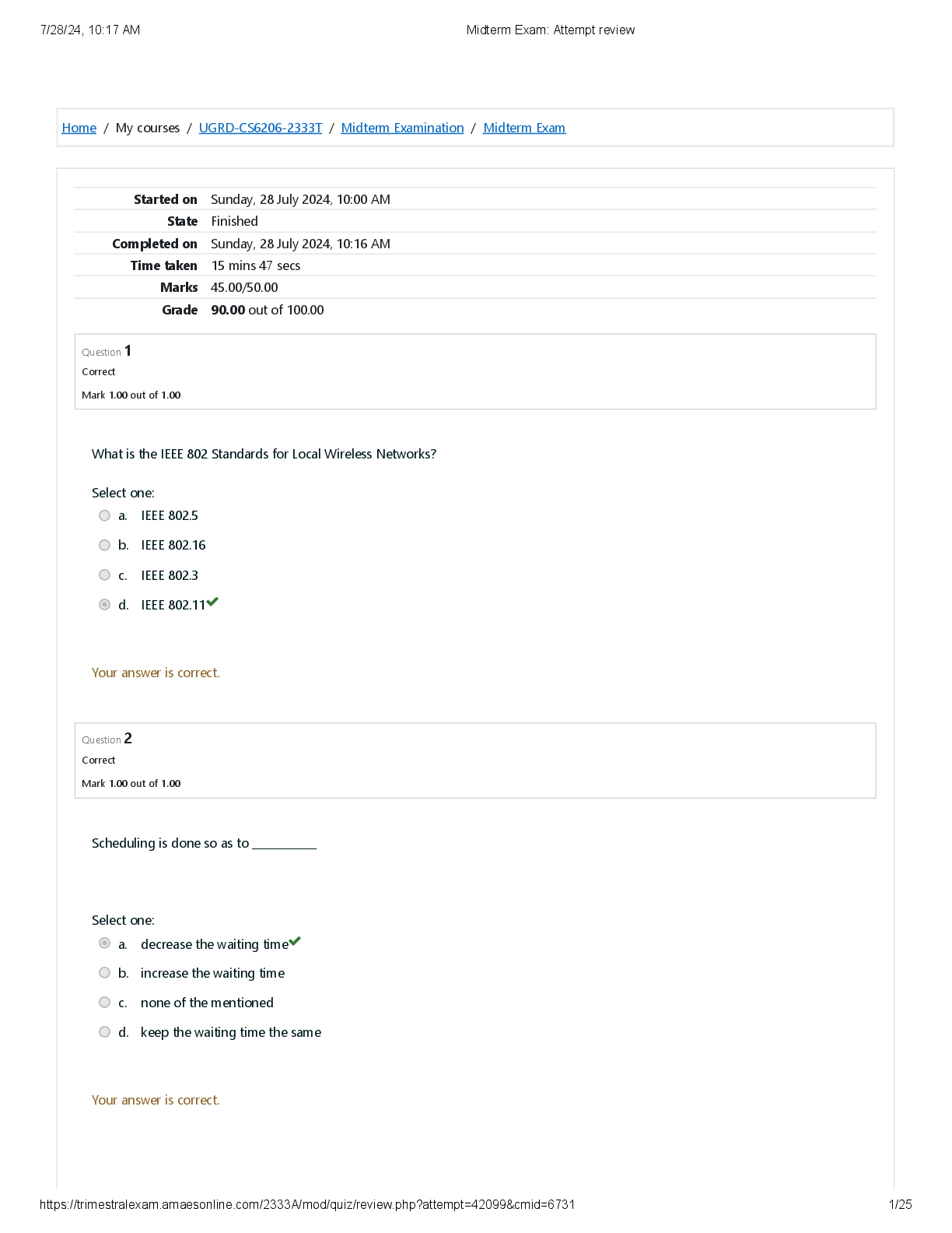 Computer Science > EXAM > BSIT IT6209 Principles of Operating Systems and Its Applications Midterm Exam | Score 90/100 (All)