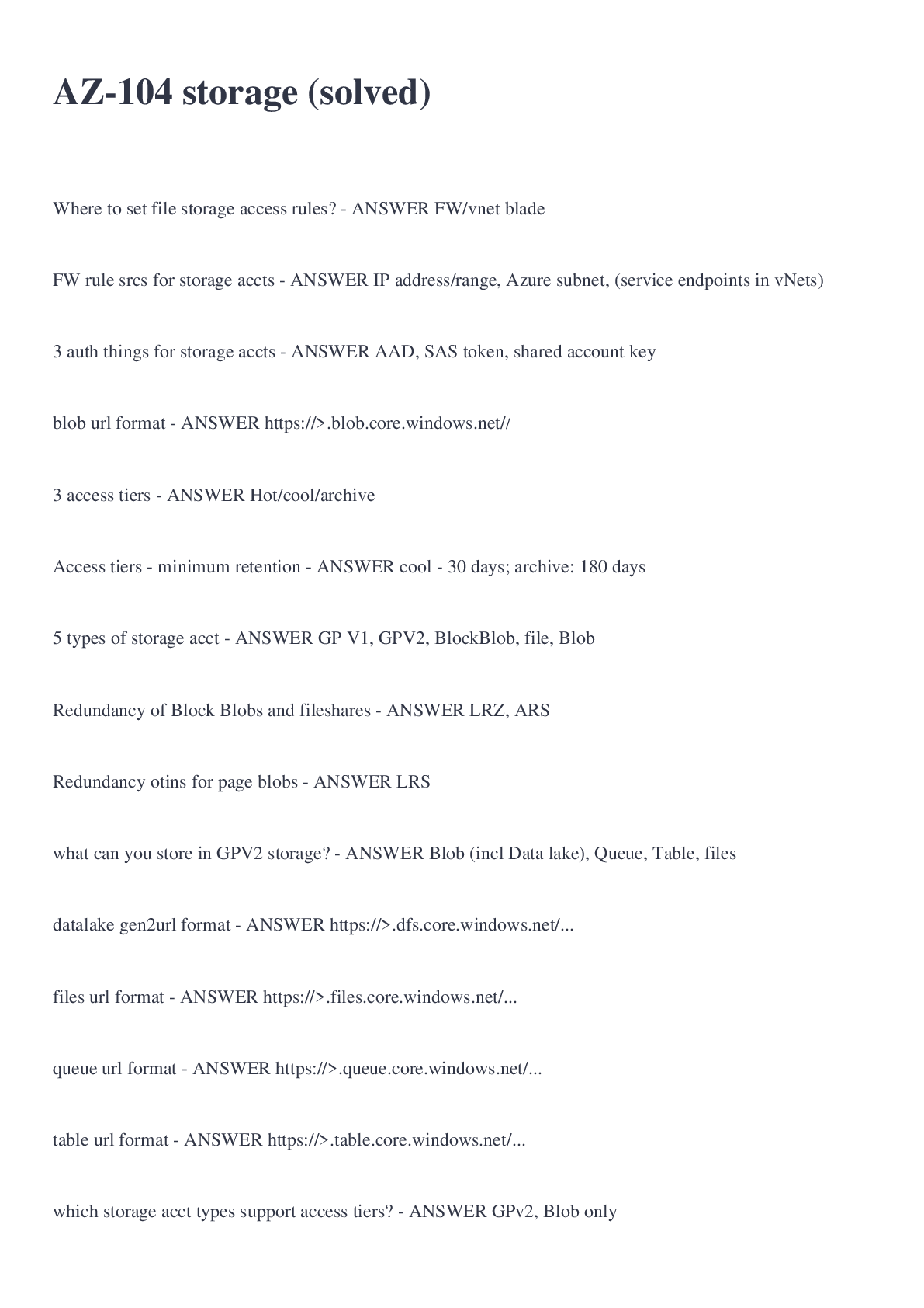 Computer Science > EXAM > AZ-104 storage (solved) (All)
