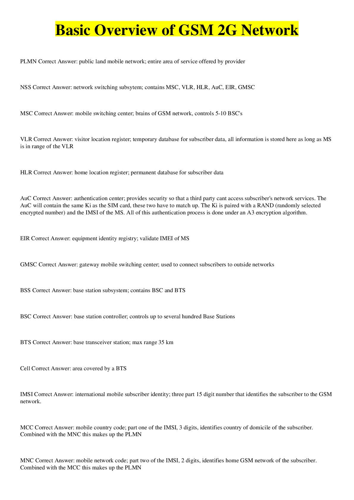 Computer Science > EXAMs > Basic Overview of GSM 2G Network (All)