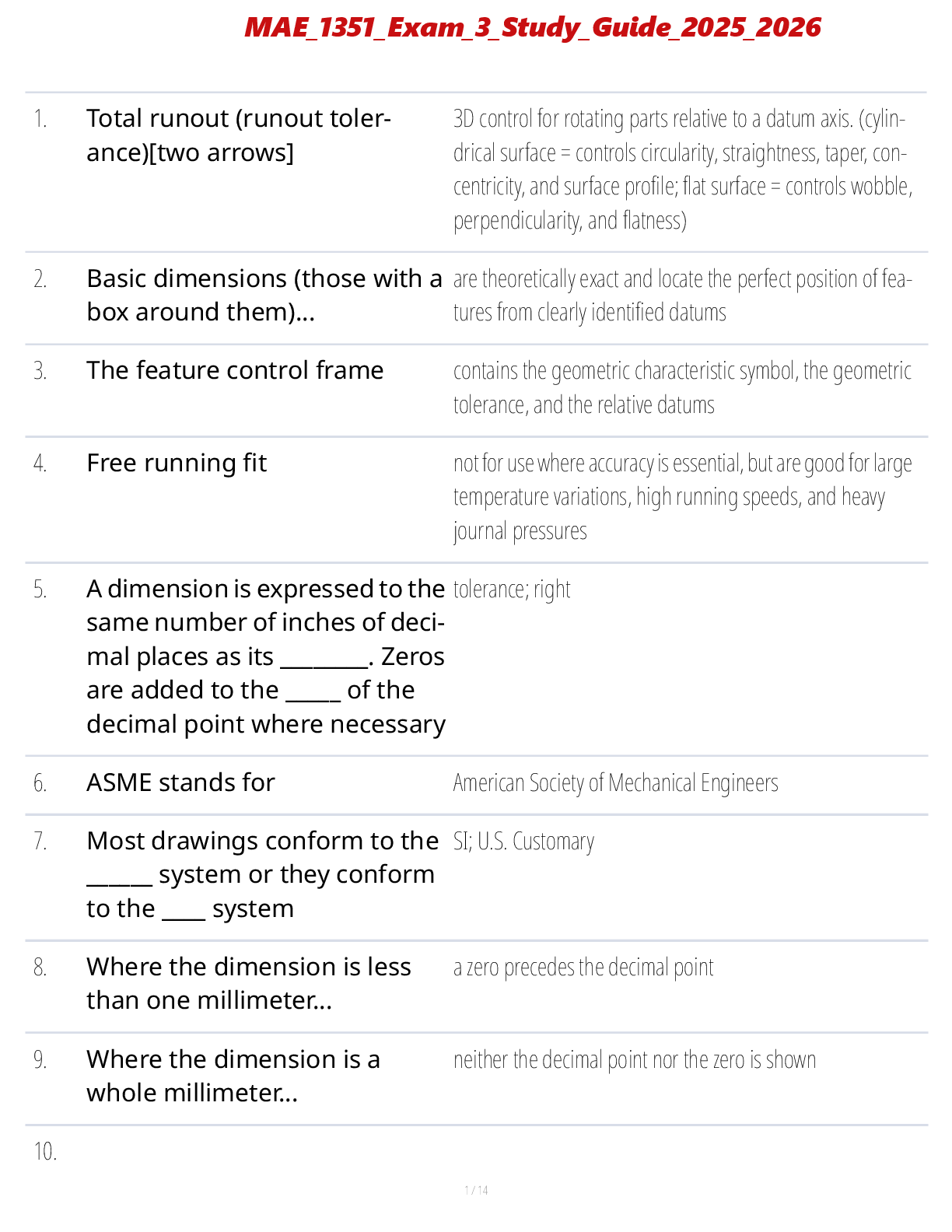 Engineering Mechanics > STUDY GUIDE > MAE 1351 Exam 3 Study Guide 2025 (All)