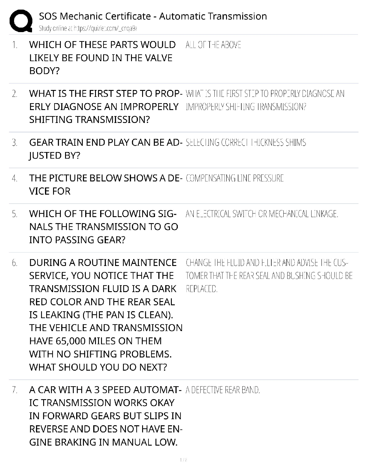 Engineering Mechanics > QUESTIONS & ANSWERS > SOS Mechanic Certificate / Automatic Transmission Specialist / 2025 Exam / Score 100% Study Guide & Test Bank (All)