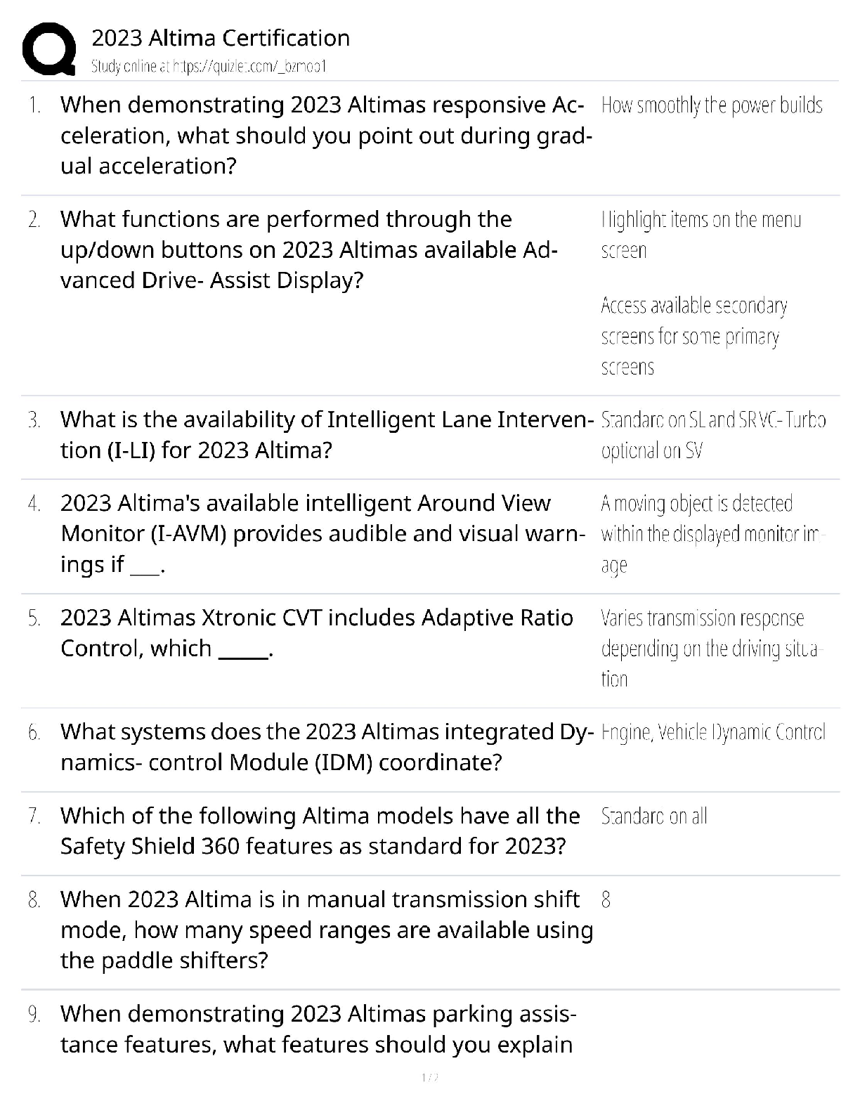 Engineering Mechanics > QUESTIONS & ANSWERS > 2023 Altima Certification / Nissan Technician Exam / ProPILOT & VC-Turbo Prep / NATEF-Aligned (All)