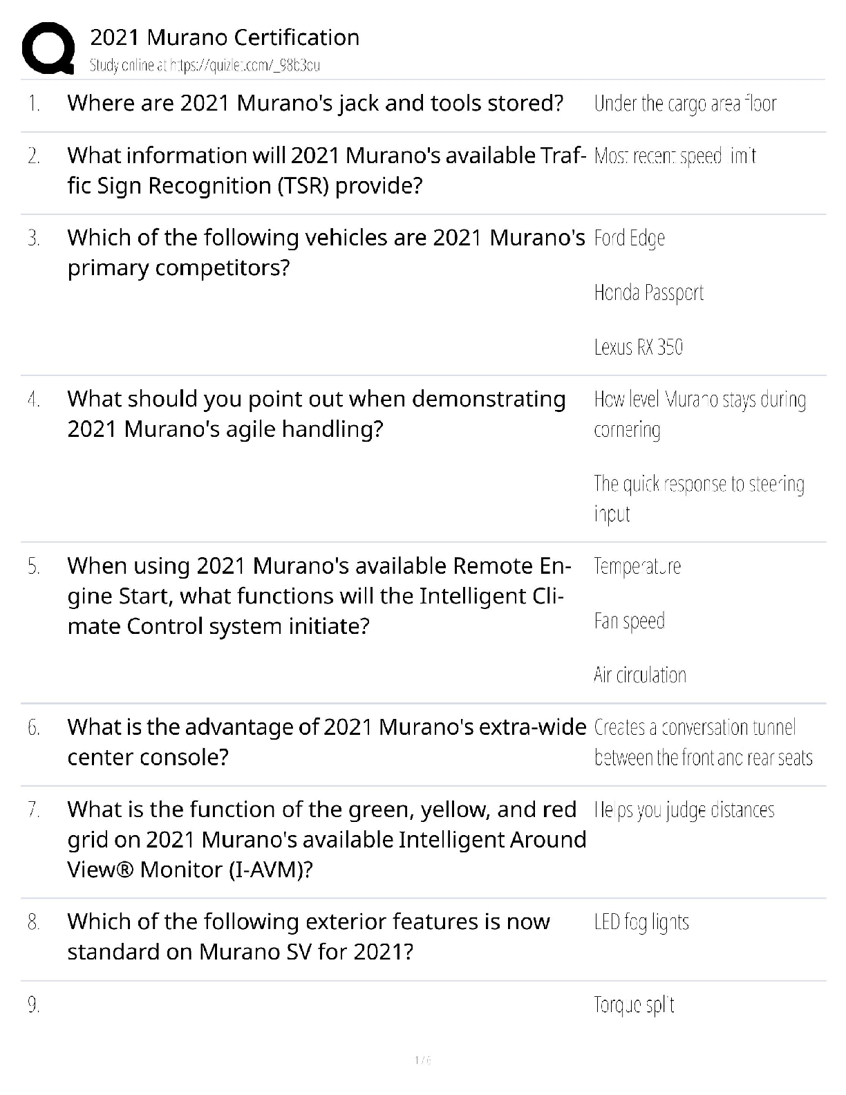Engineering Mechanics > QUESTIONS & ANSWERS > Nissan Murano Certification / 2025 Update & Test Bank / Score 100% (All)