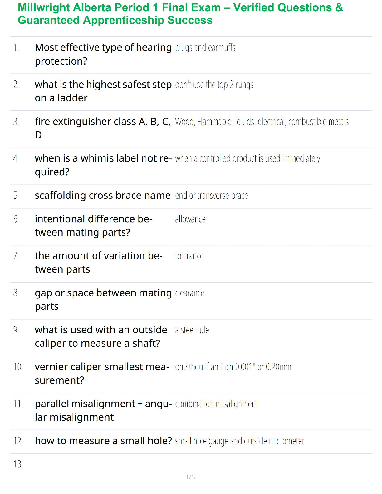 Engineering Mechanics > QUESTIONS & ANSWERS > Millwright Alberta Period 1 Final Exam – Verified Questions & Guaranteed Apprenticeship Success (All)