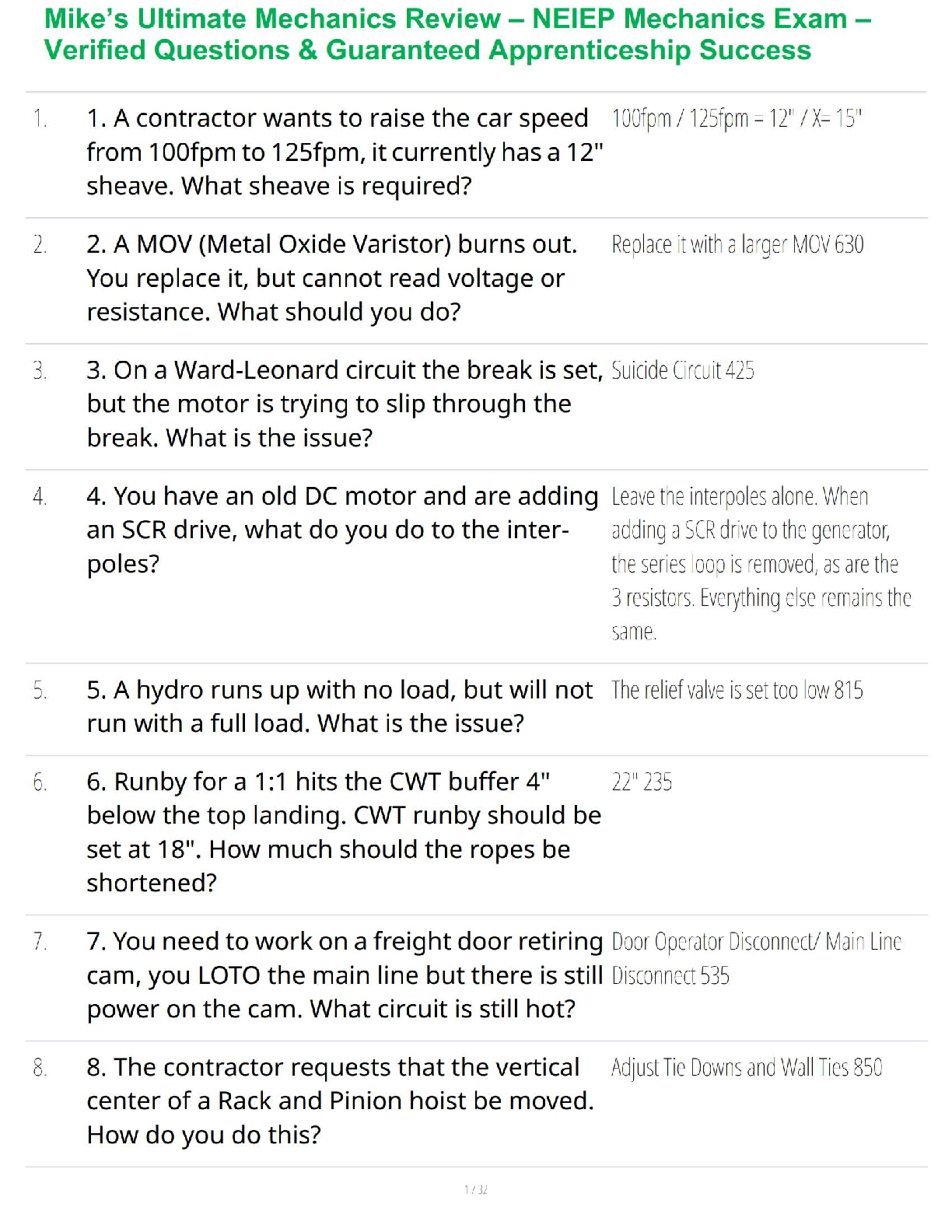 Engineering Mechanics > QUESTIONS & ANSWERS > Elevator Mechanic Questions and Answers Graded A+ (All)
