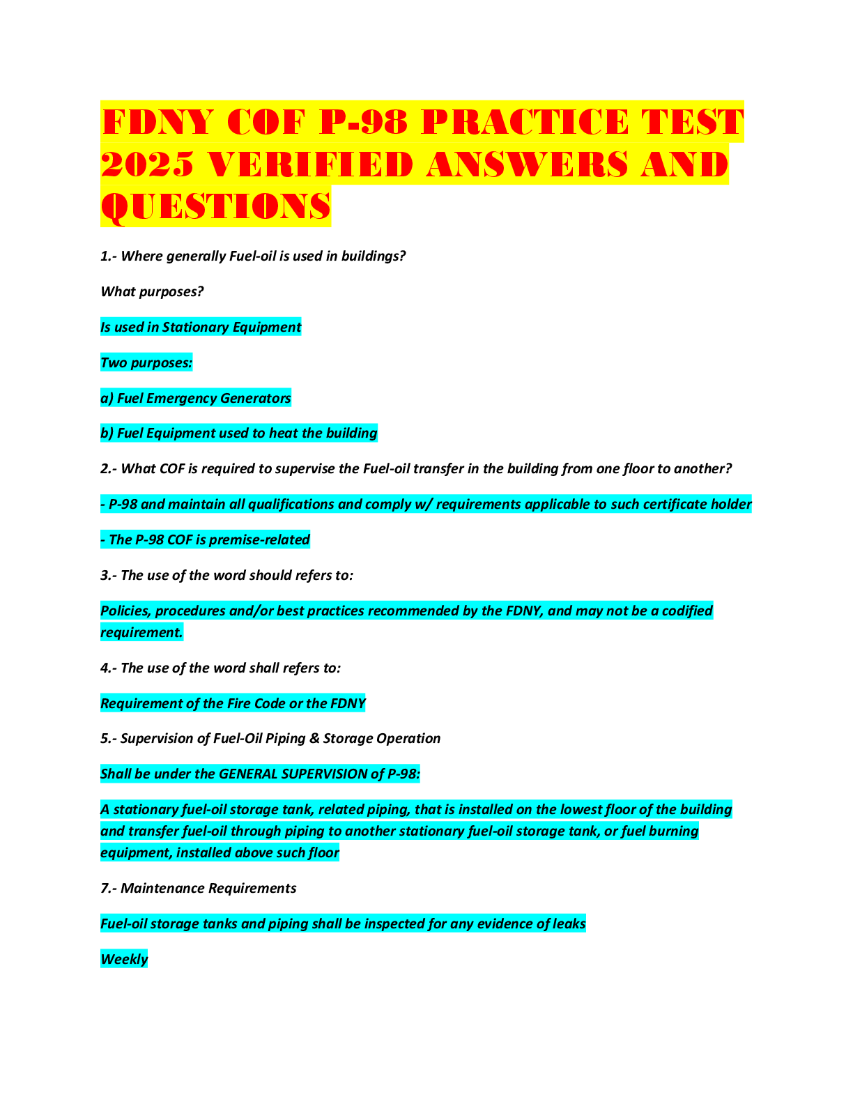Engineering Mechanics > EXAM > FDNY COF P-98 Practice Test 2025 Verified Questions and Answers (All)