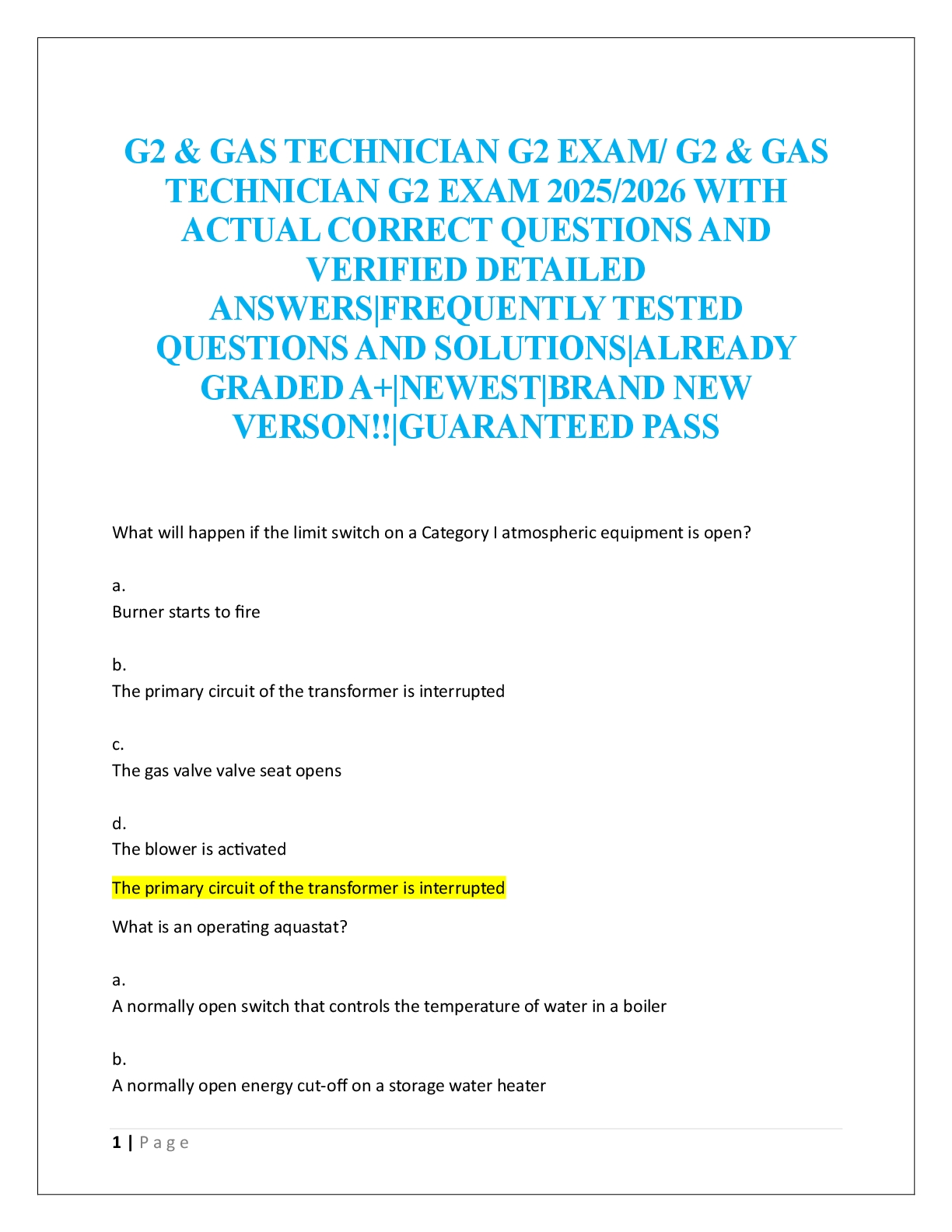 Engineering Mechanics > EXAM > G2 & GAS TECHNICIAN G2 EXAM/ G2 & GAS TECHNICIAN G2 EXAM (All)