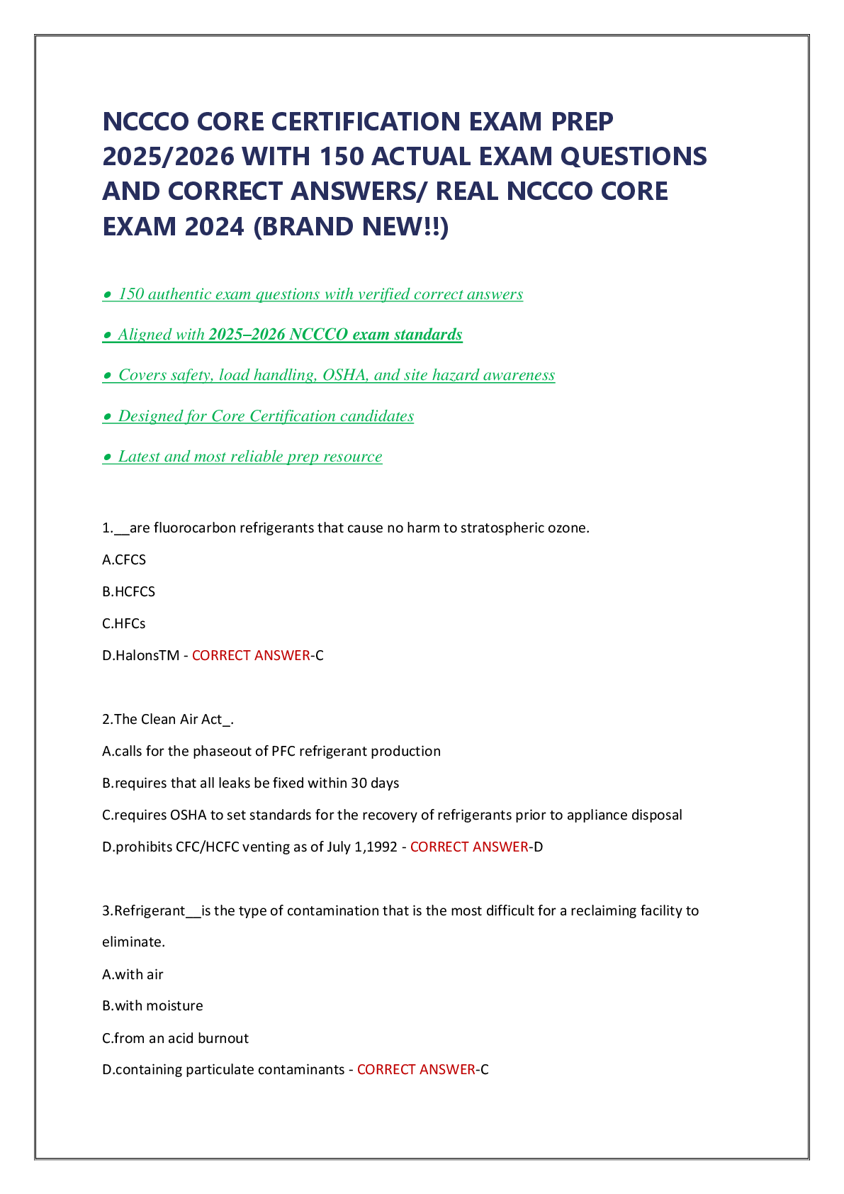 Engineering Mechanics > EXAM > NCCCO CORE CERTIFICATION EXAM PREP 2025/2026 WITH 150 ACTUAL EXAM QUESTIONS AND CORRECT ANSWERS/ REAL NCCCO CORE EXAM 2024 (BRAND NEW!!) (All)