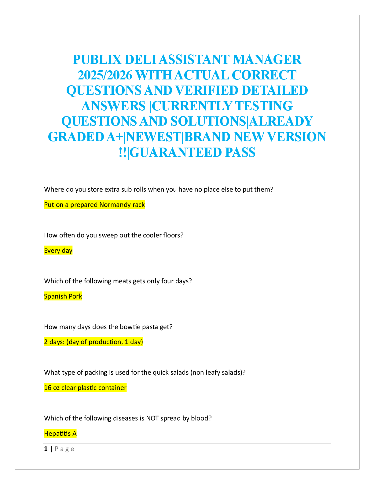 Business Management > EXAM > PUBLIX DELI ASSISTANT MANAGER (All)