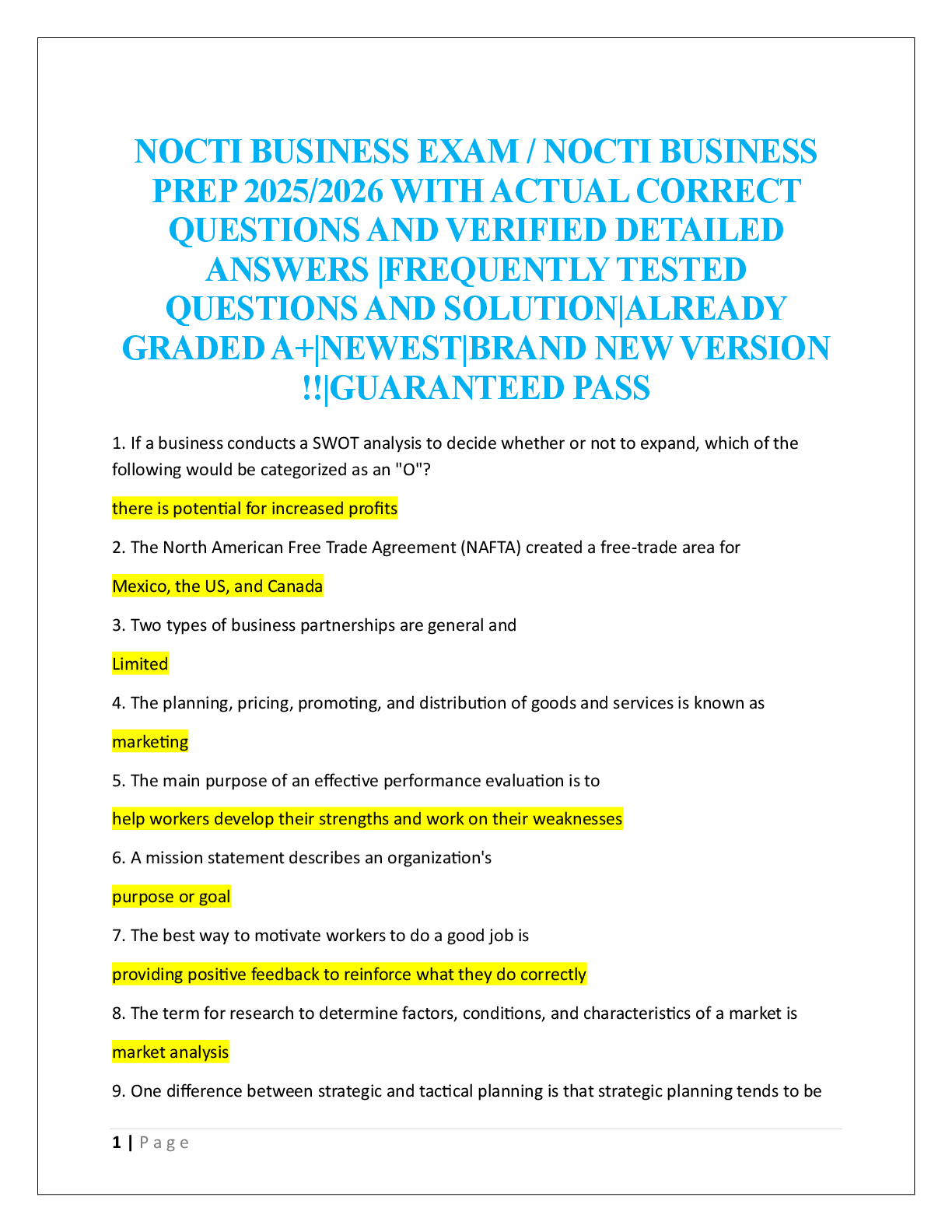Business Management > EXAM > NOCTI BUSINESS EXAM / NOCTI BUSINESS PREP (All)