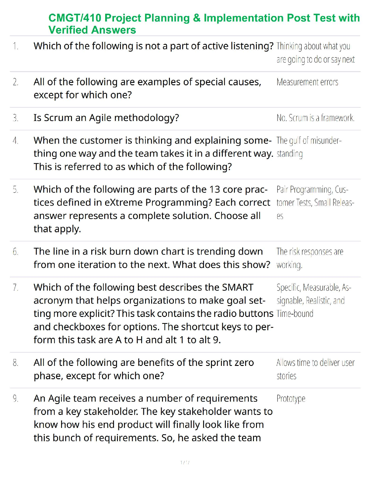 Business Management > ASSIGNMENT > CMGT/410 Project Planning & Implementation Post Test with Verified Answers (All)