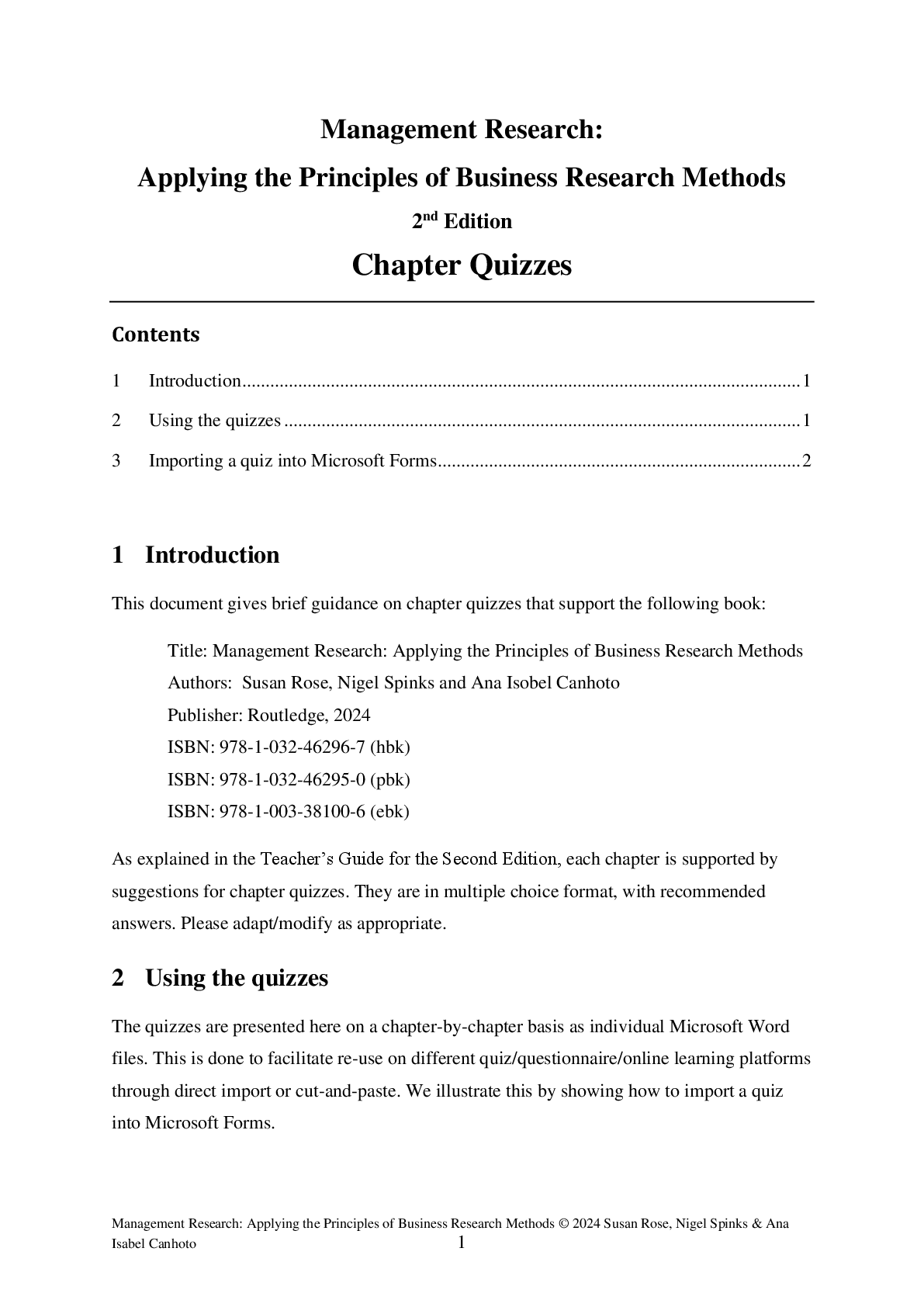 Business Management > TEST BANKS > Chapter Quizzes for Management Research Applying the Principles of Business Research Methods 2e By Susan Rose, Nigel Spinks, Ana Isabel Canhoto (All)
