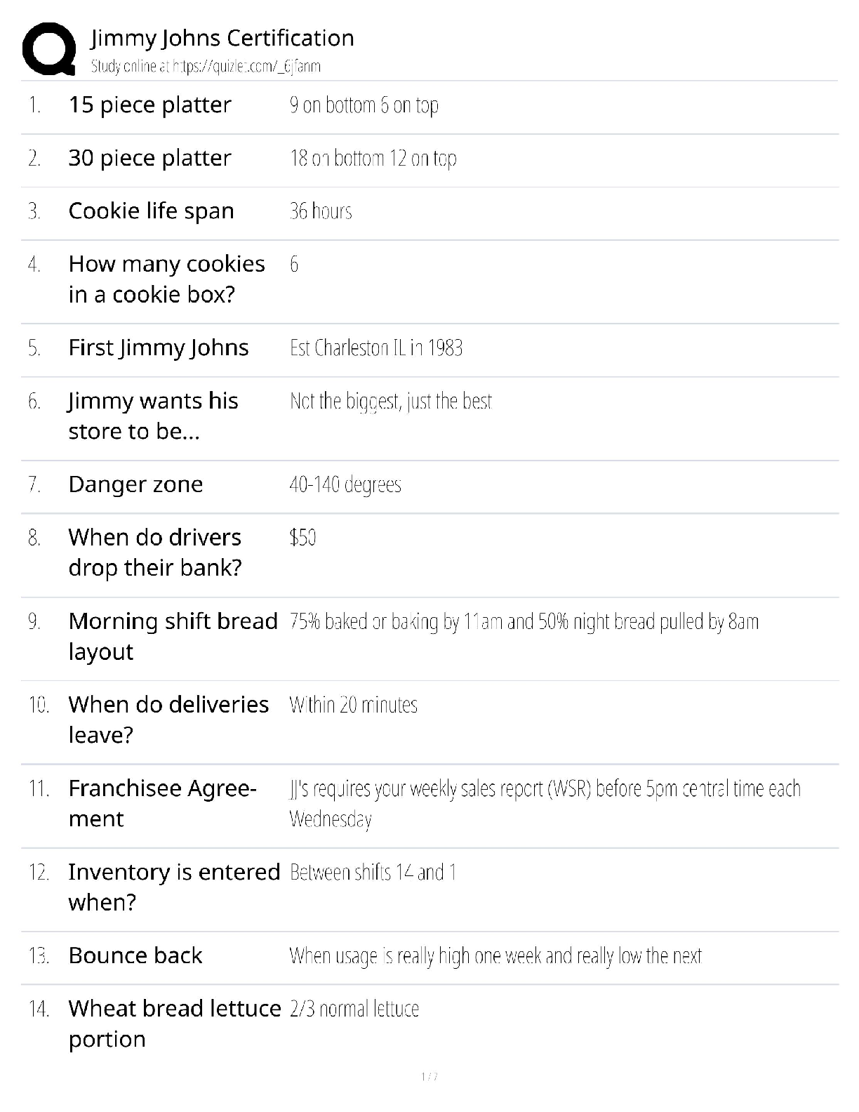 Business Management > QUESTIONS & ANSWERS > Jimmy John's Certification / Sandwich Artist Exam / 2026 Update / Practice Test & Study Guide (All)
