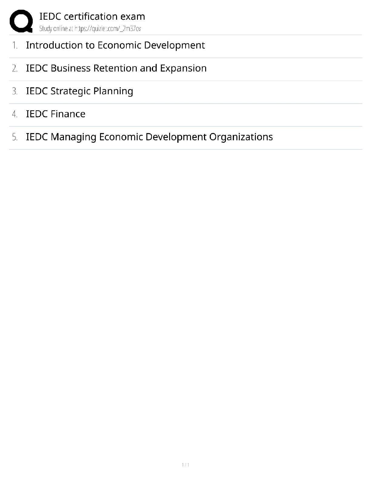 Business Management > QUESTIONS & ANSWERS > IEDC Certification Exam / CEcD Practice Tests / 2025 Update / Pass Guarantee (All)