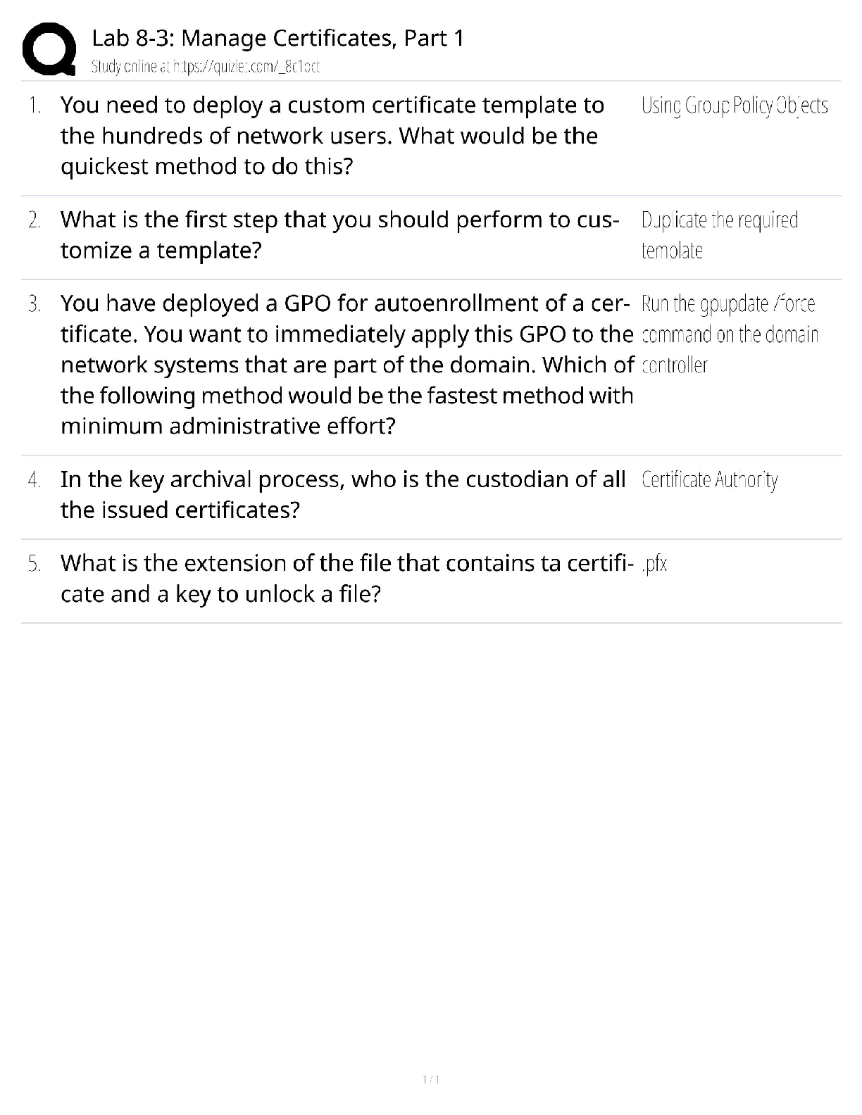 Business Management > QUESTIONS & ANSWERS > Lab 8-3 Manage Certificates Part 1 / PKI Certificate Management / 2026 Update / Lab Guide & Answers (All)