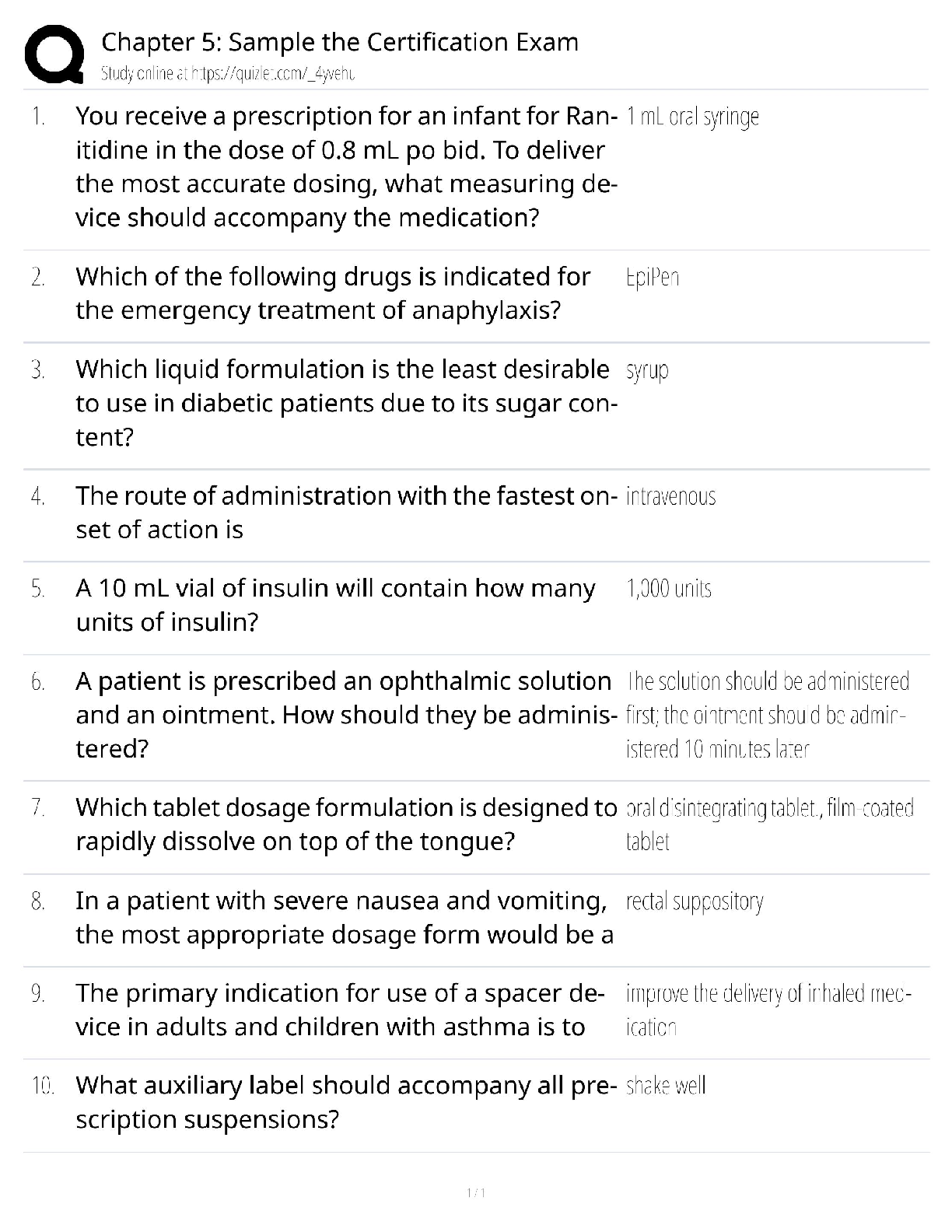 Business Management > QUESTIONS & ANSWERS > Chapter 5 Sample Certification Exam / Full Practice Test & Guide / 2025 Update / Score 100% (All)
