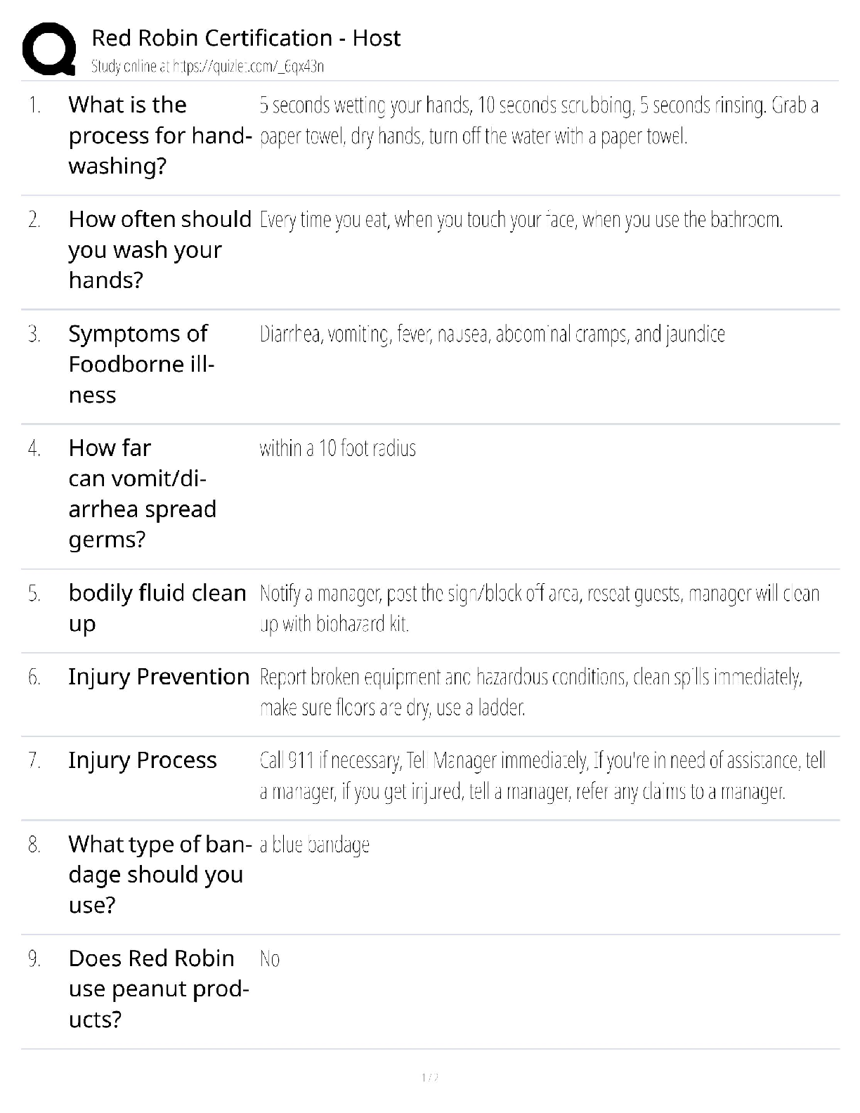 Business Management > QUESTIONS & ANSWERS > Red Robin Certification - Host / Restaurant Training Guide / 2025 Update / Score 100% (All)