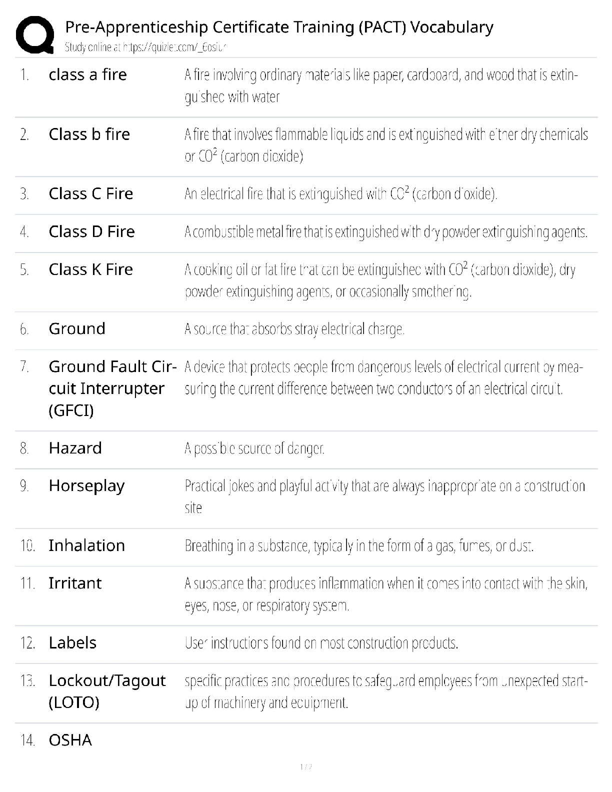 Business Management > QUESTIONS & ANSWERS > PACT Vocabulary Test Bank / Pre-Apprenticeship Training / 2025 Update / Score 100% (All)