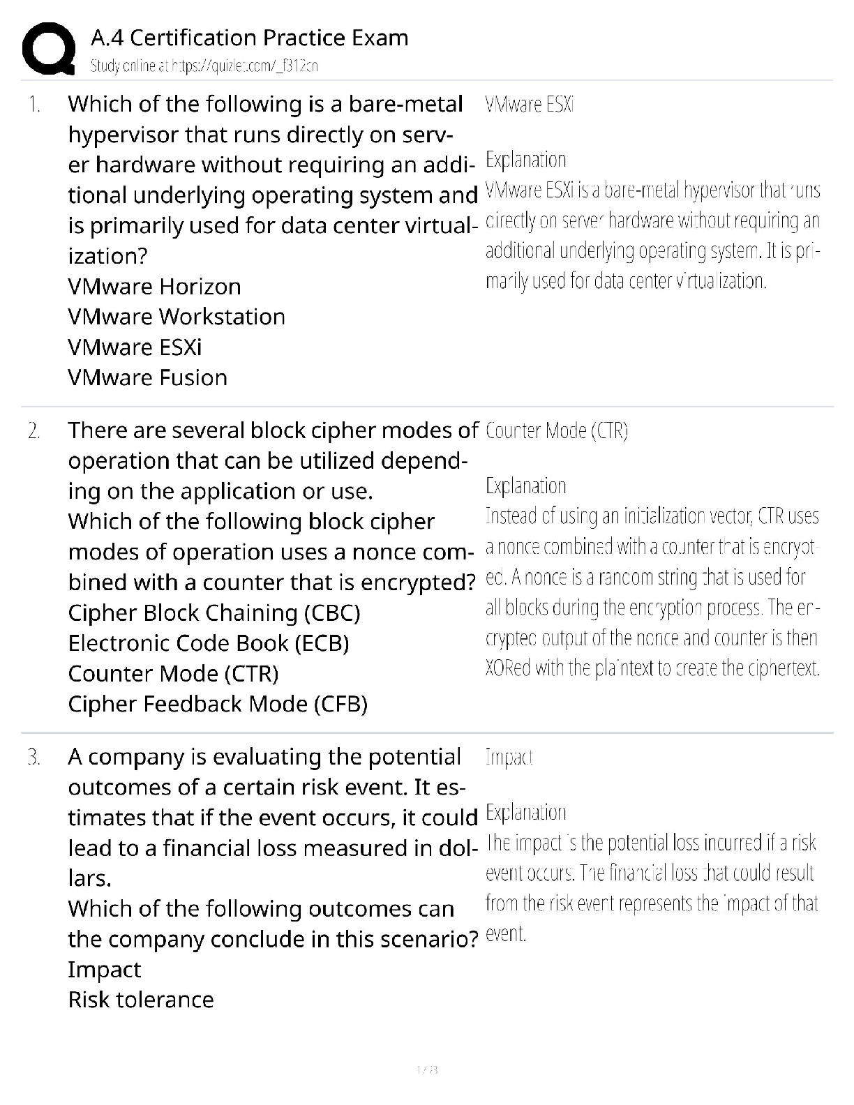 Business Management > QUESTIONS & ANSWERS > A.4 Certification Practice Exam Test Bank / 2025 Update / Score 100% (All)