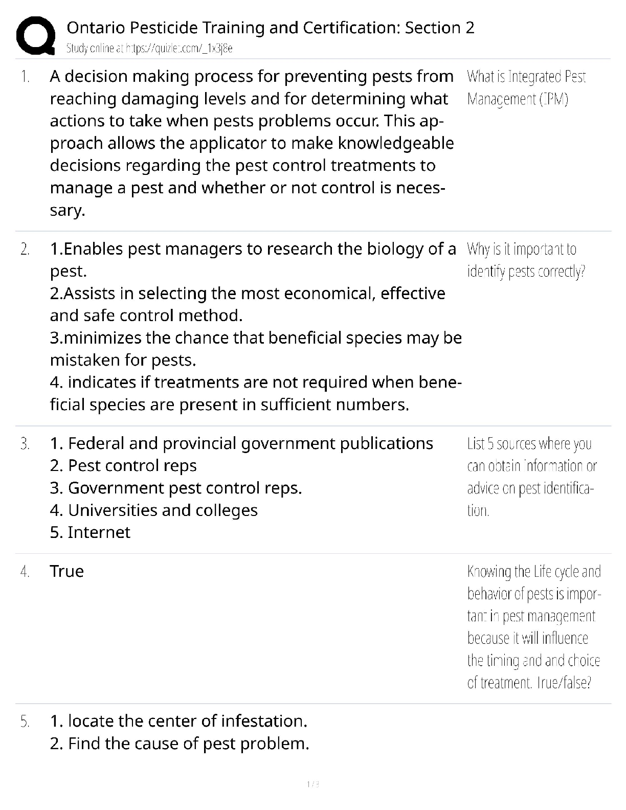 Business Management > QUESTIONS & ANSWERS > Ontario Pesticide Certification Section 2 / Pest Management Exam / 2026 Update / Practice Test & Study Guide (All)