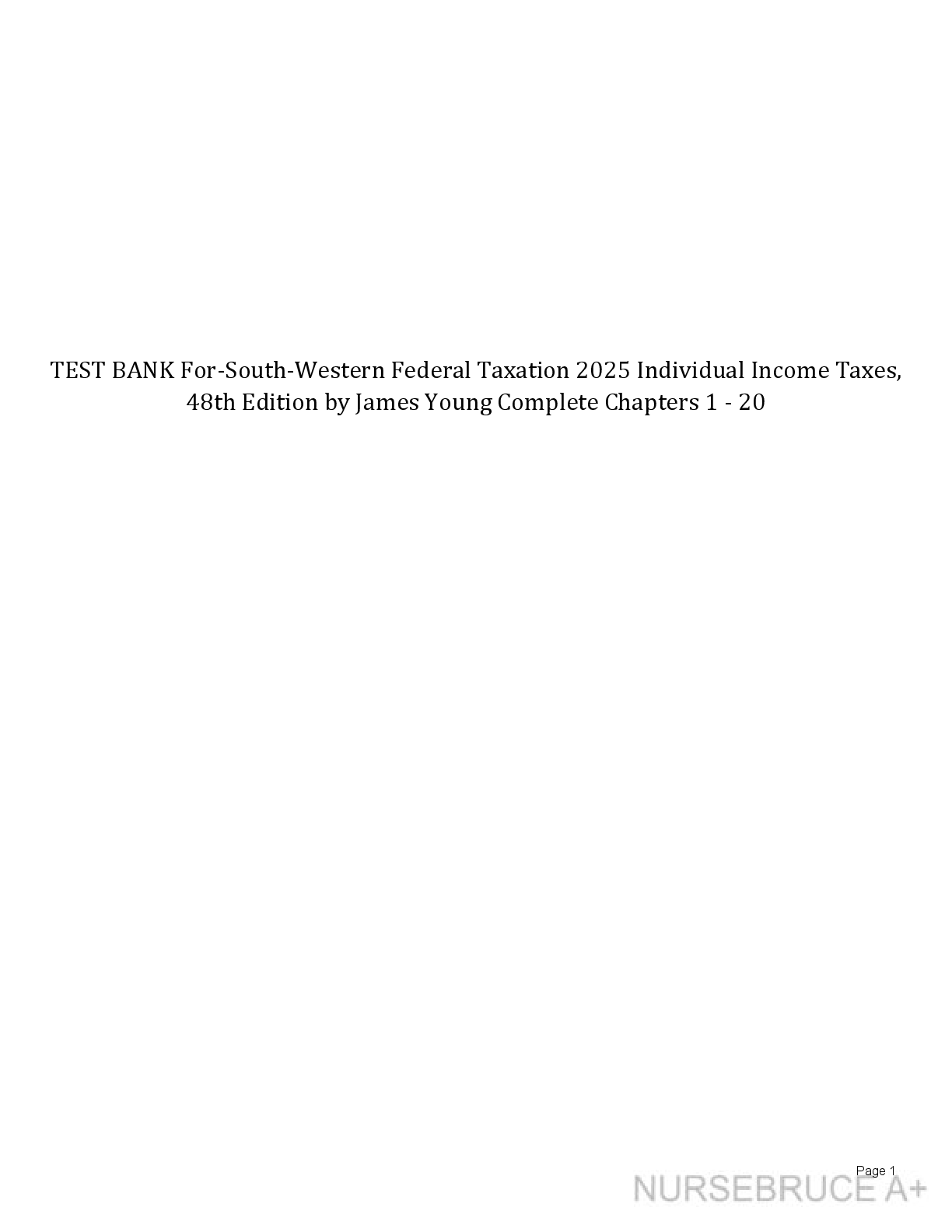 Business Management > TEST BANKS > COMPLETE TEST BANK For-South-Western Federal Taxation 2025 Individual Income Taxes 48th Edition by James Young Chapters 1 - 20! 100% CORRECT ANSWERS RATED A+ (All)