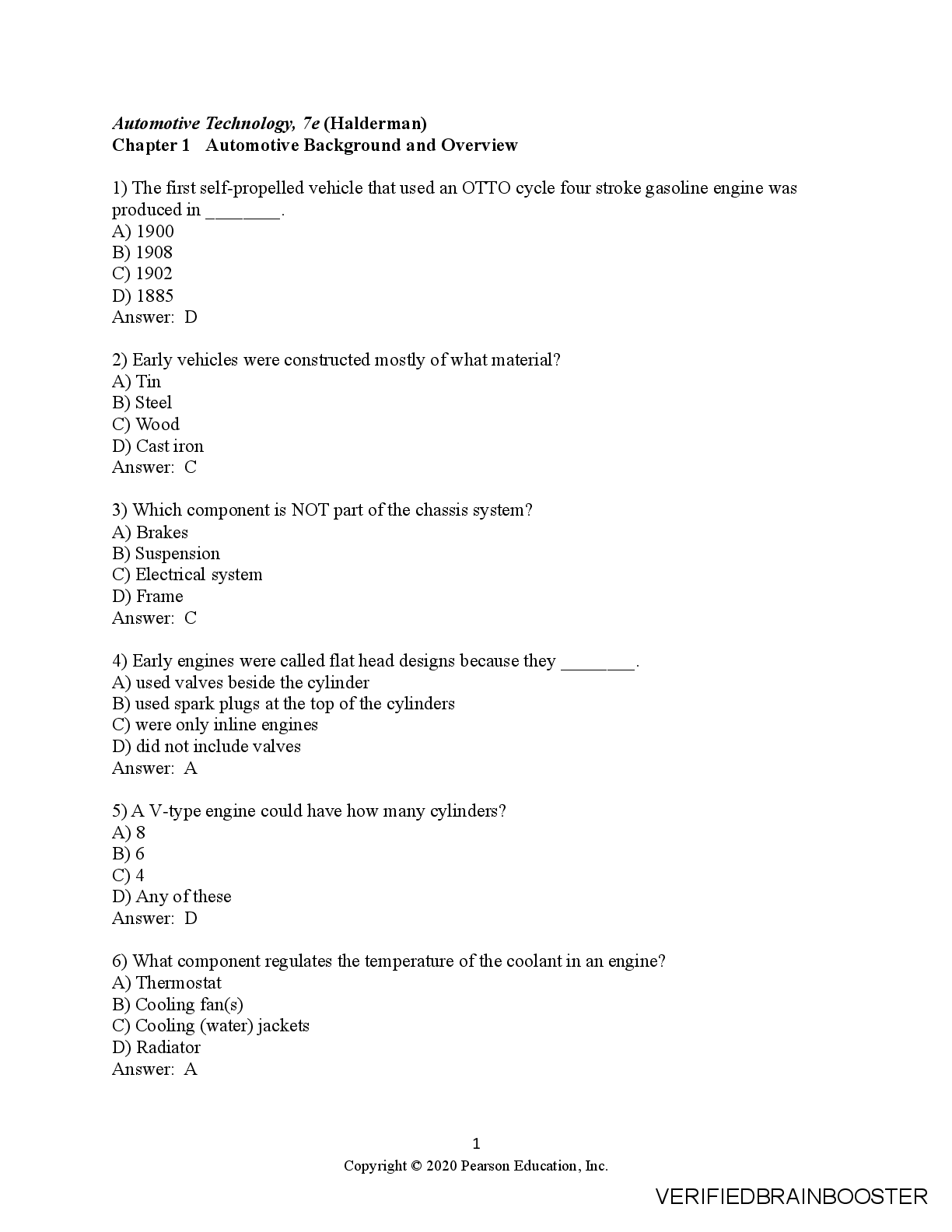Business Management > TEST BANKS > TEST BANK Automotive Technology, Principles Diagnosis and Service 7e James D Halderman (All)