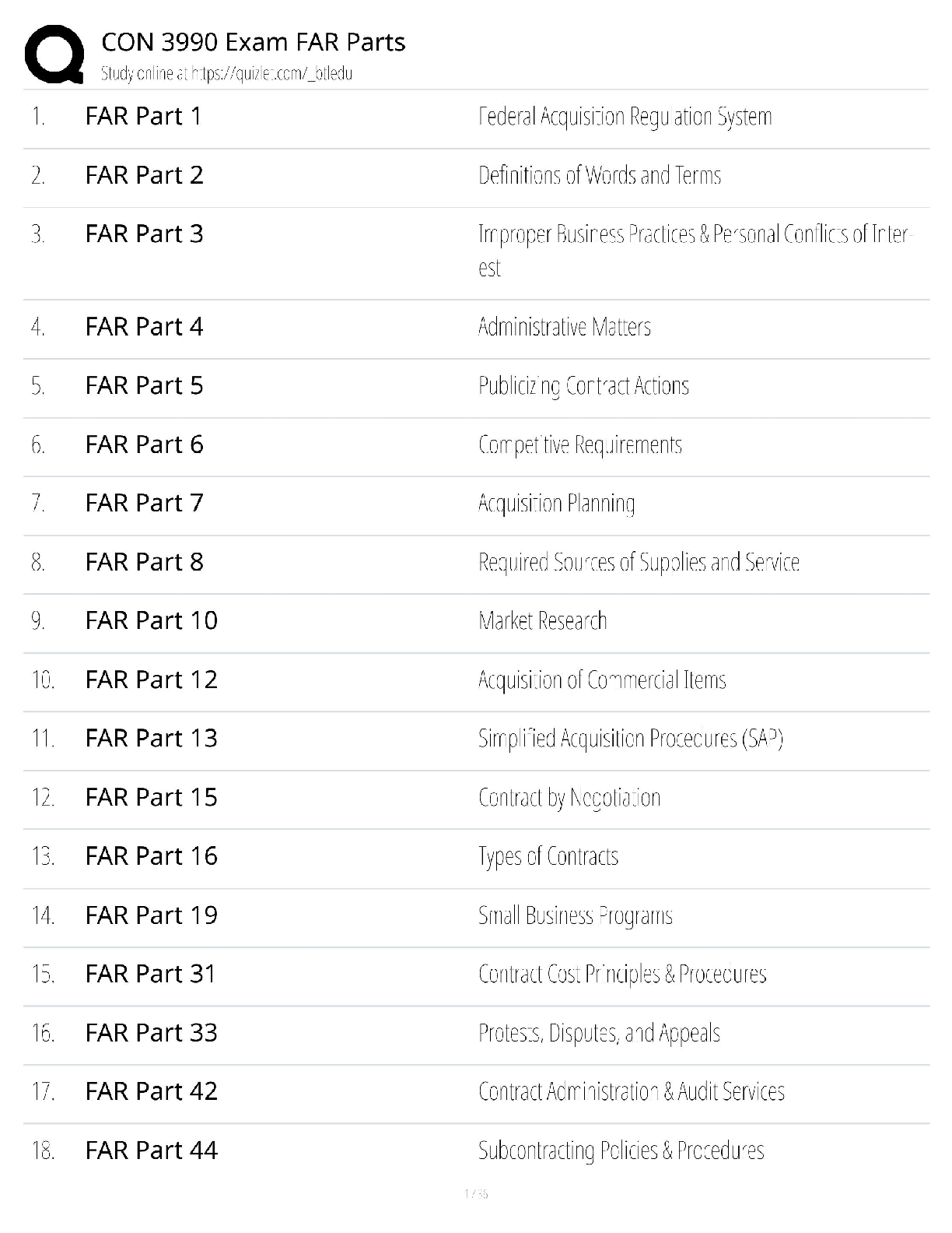 Business Management > QUESTIONS & ANSWERS > CON 3990 Exam FAR Parts / Federal Acquisition Regulation / 2026 Update / Practice Test & Study Guide (All)