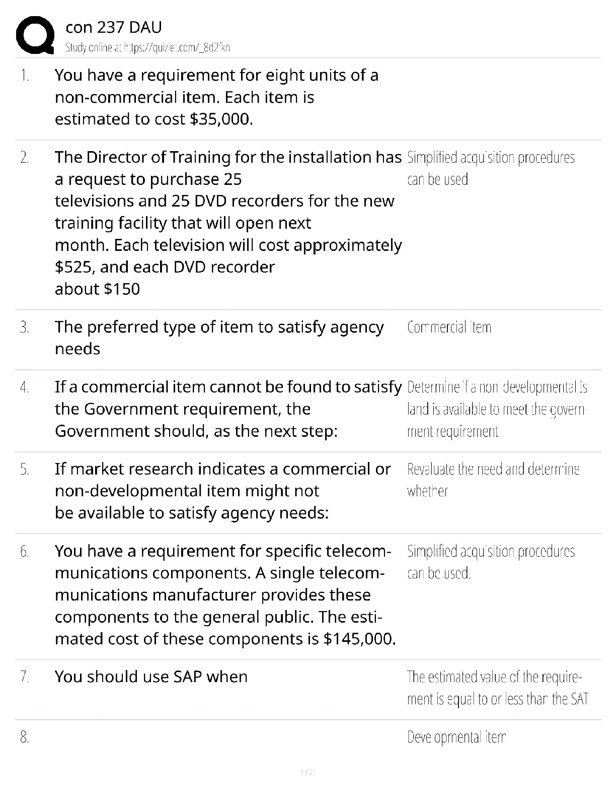 Business Management > QUESTIONS & ANSWERS > CON 237 DAU Exam / Defense Acquisition University / 2026 Update / Practice Test & Study Guide (All)