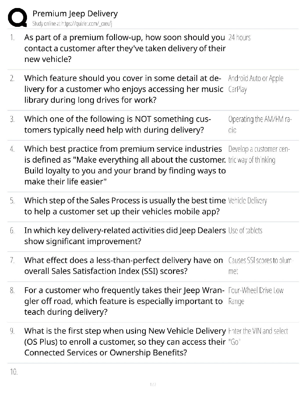 Business Management > QUESTIONS & ANSWERS > Premium Jeep Delivery Certification / Automotive Delivery Specialist / 2026 Update / Exam Prep & Test Bank (All)