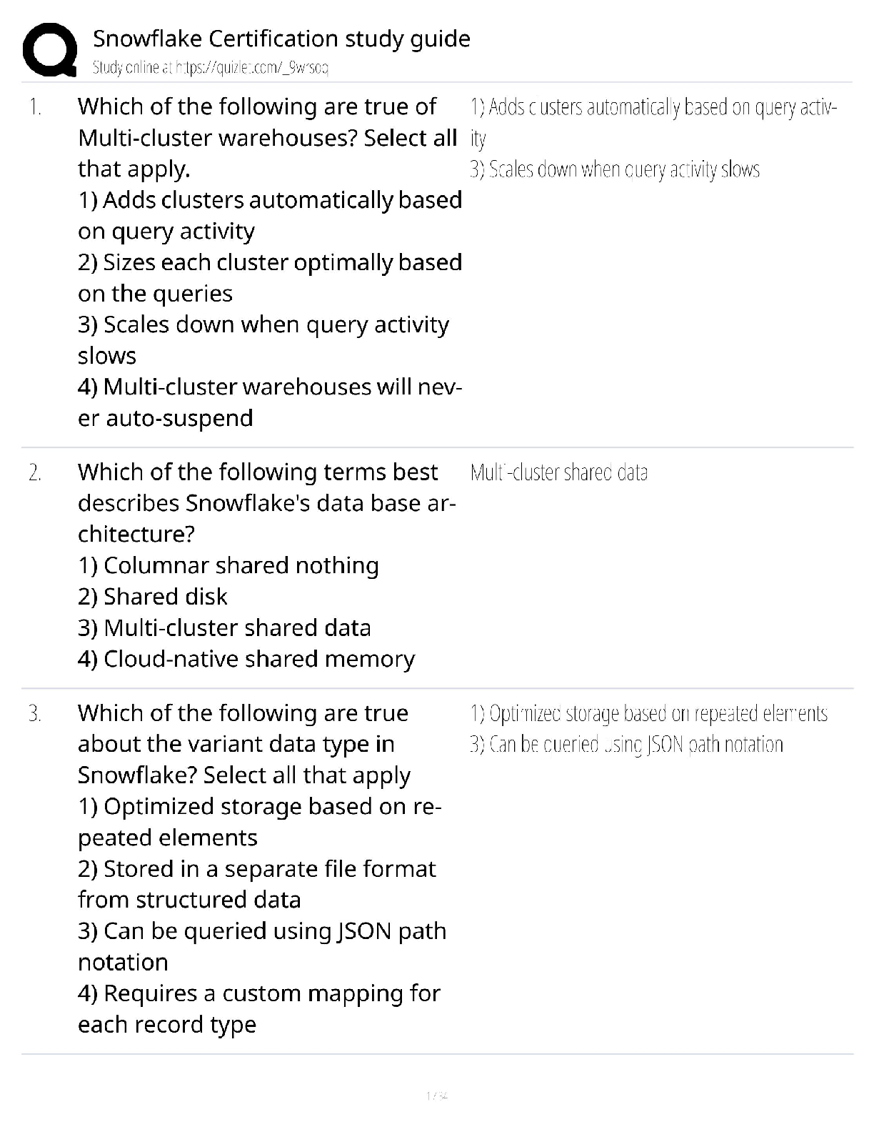Business Management > QUESTIONS & ANSWERS > Snowflake Certification Study Guide / SnowPro Core Exam / 2026 Update / Practice Test & Answers (All)